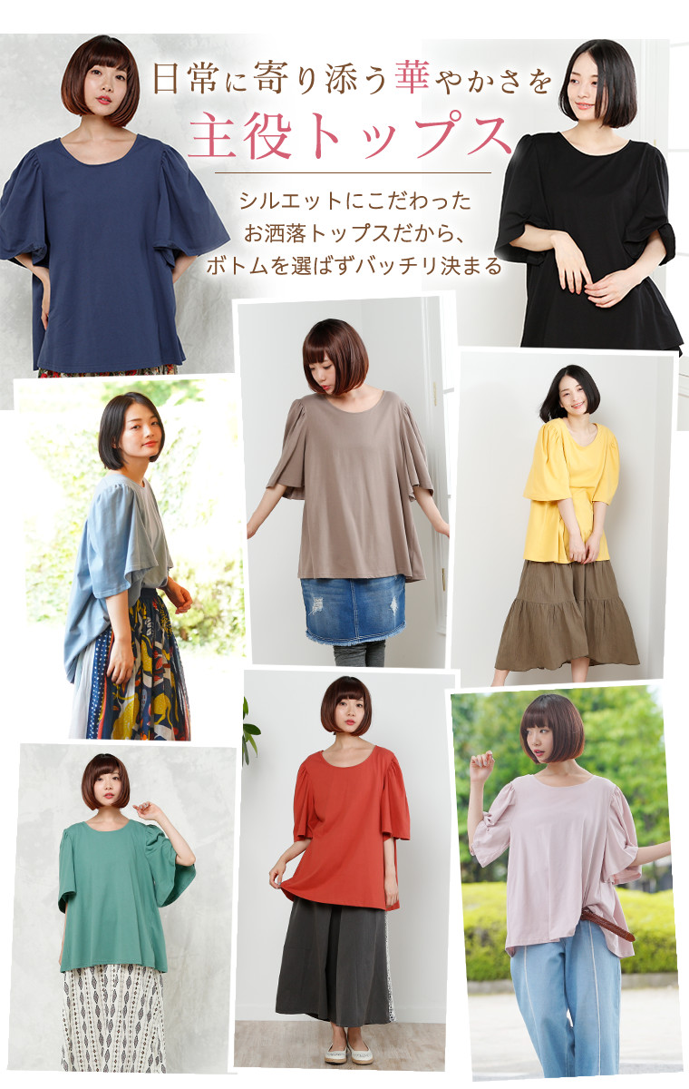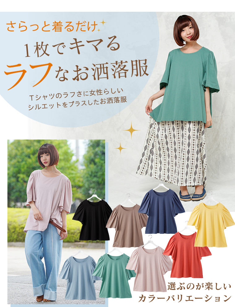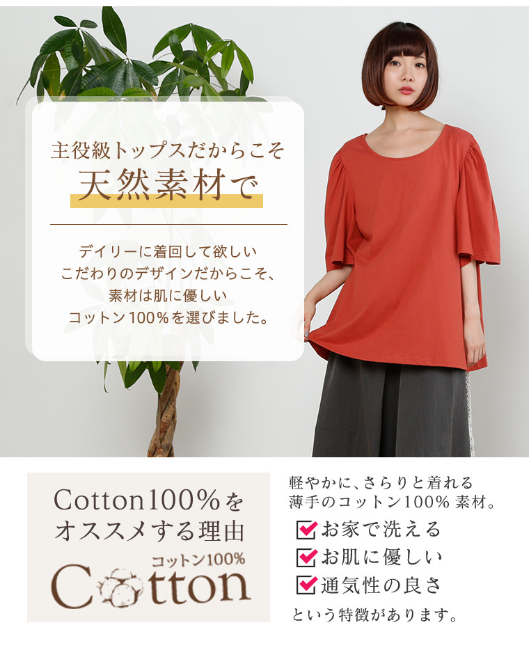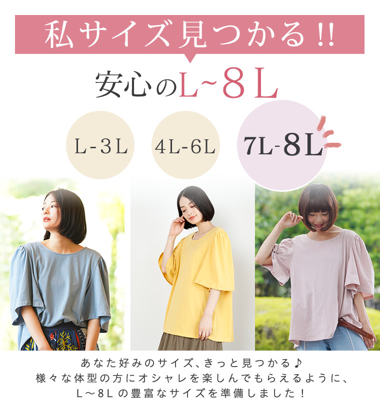 オリジナル トップス プルオーバー LL 3L 4L 5L 6L 7L 8L ぽっちゃり おしゃれ オシャレ かわいい 袖コンシャス コットン100% ゆる袖 フレア バックギャザー 五分袖 カットソー