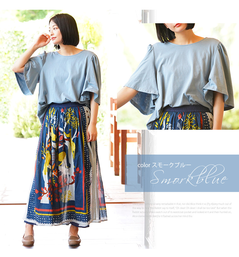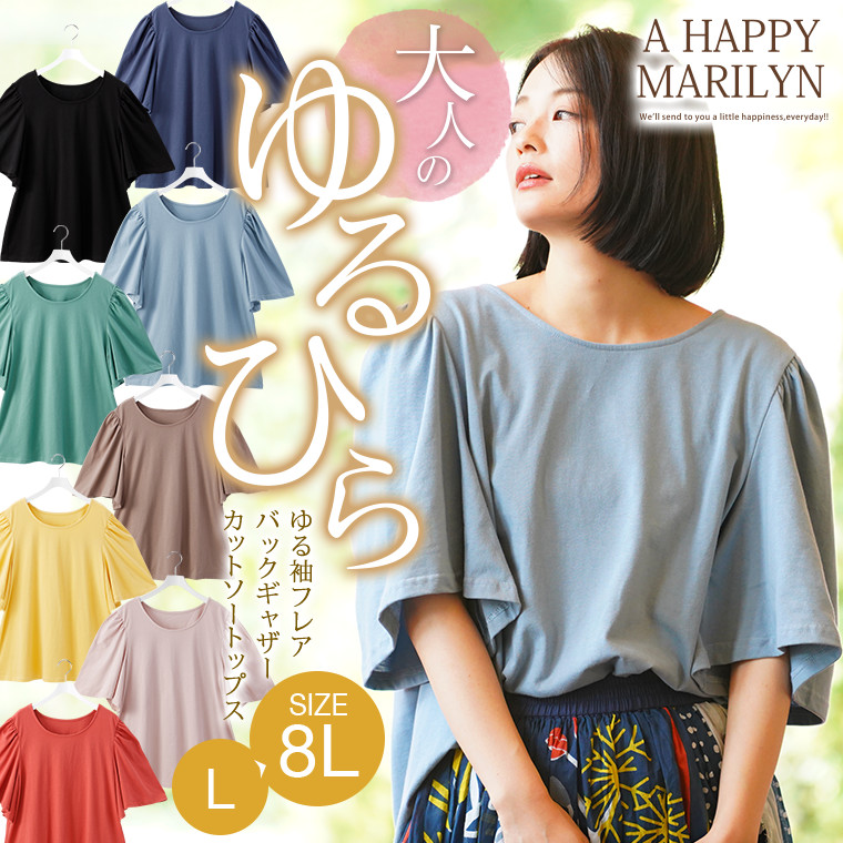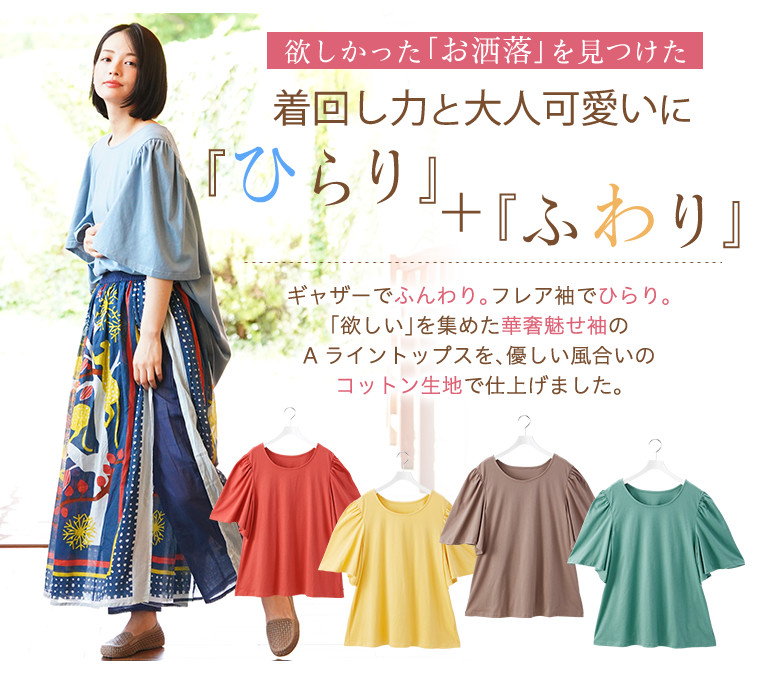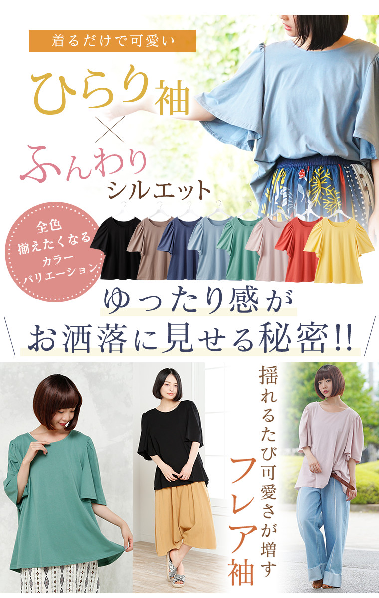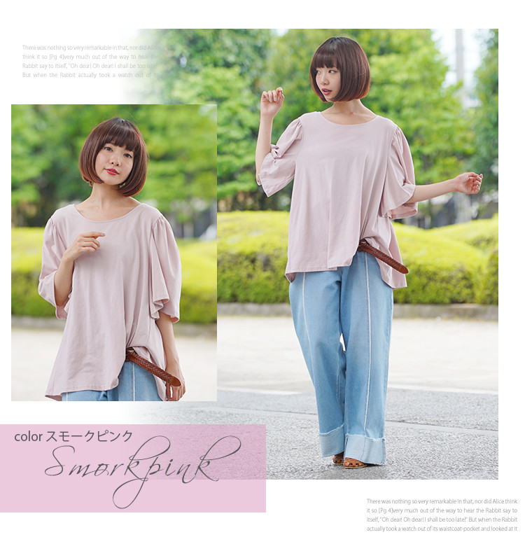 オリジナル トップス プルオーバー LL 3L 4L 5L 6L 7L 8L ぽっちゃり おしゃれ オシャレ かわいい 袖コンシャス コットン100% ゆる袖 フレア バックギャザー 五分袖 カットソー