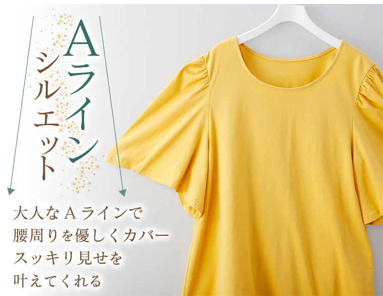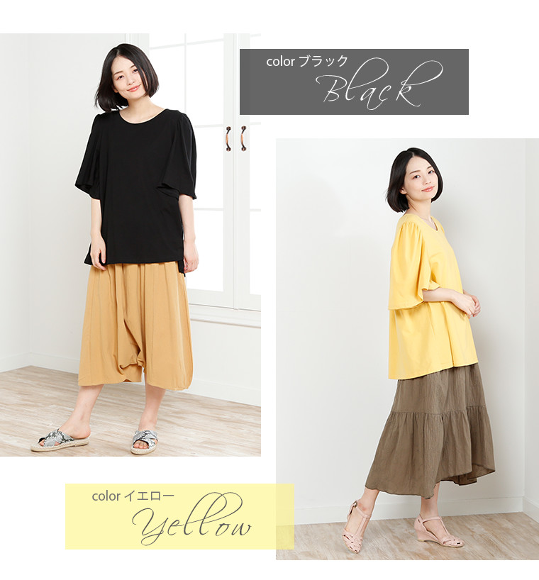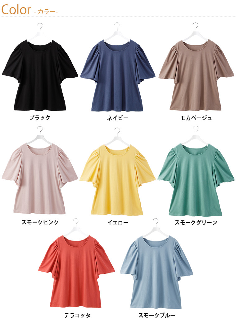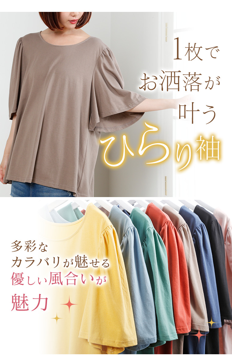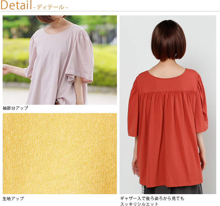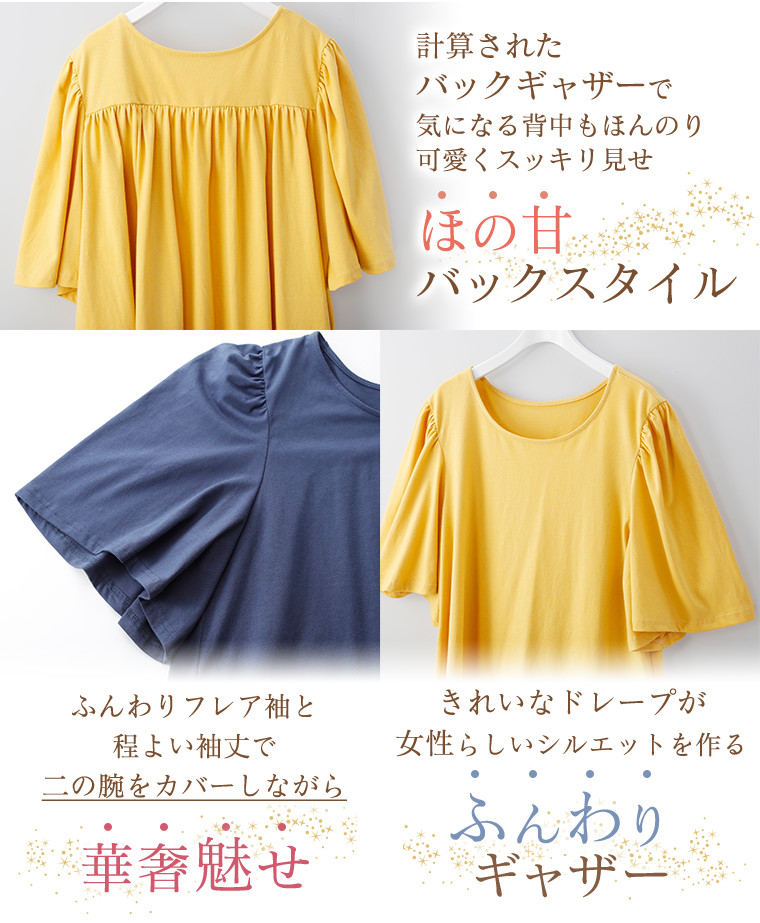 4. 大きいサイズ コットン100% ゆる袖 フレア バックギャザー 五分袖 カットソー