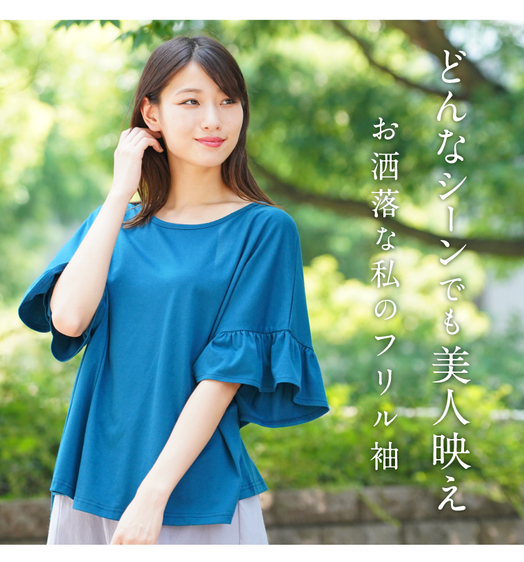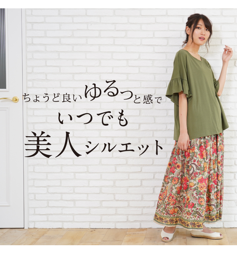 ゆるシルエットにフリルがお洒落。ゆったりなのにすっきり魅せる美人なカットソー