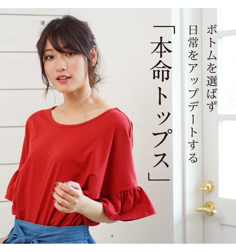 ドロップショルダーで作るサイズがオシャレ感漂う雰囲気に。着こなしの幅も広いカットソートップス。