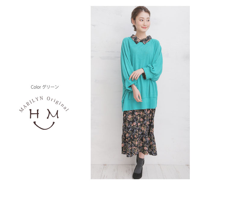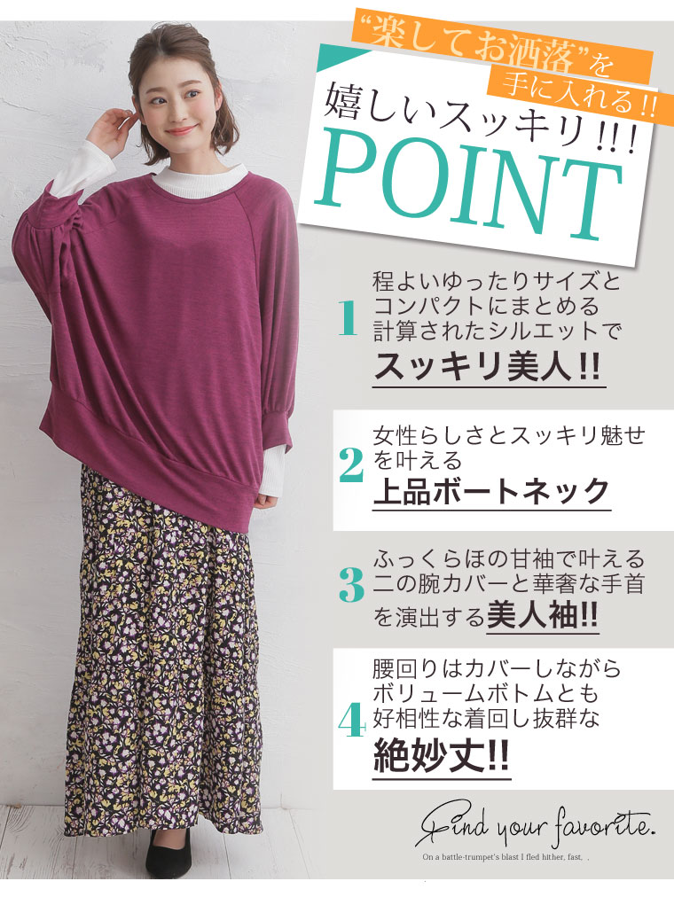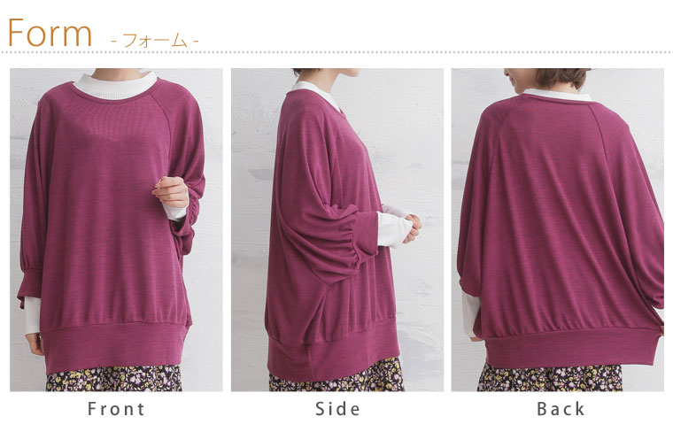 落ち感があるさらりと心地よい生地感が魅力。ふんわり袖とゆるシルエットで可愛くスッキリ魅せを叶える