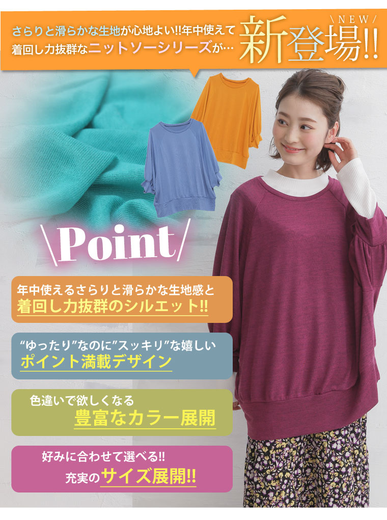さらりとふんわり柔らかな生地感がヤミツキ♪ぽわん袖ニットソートップス