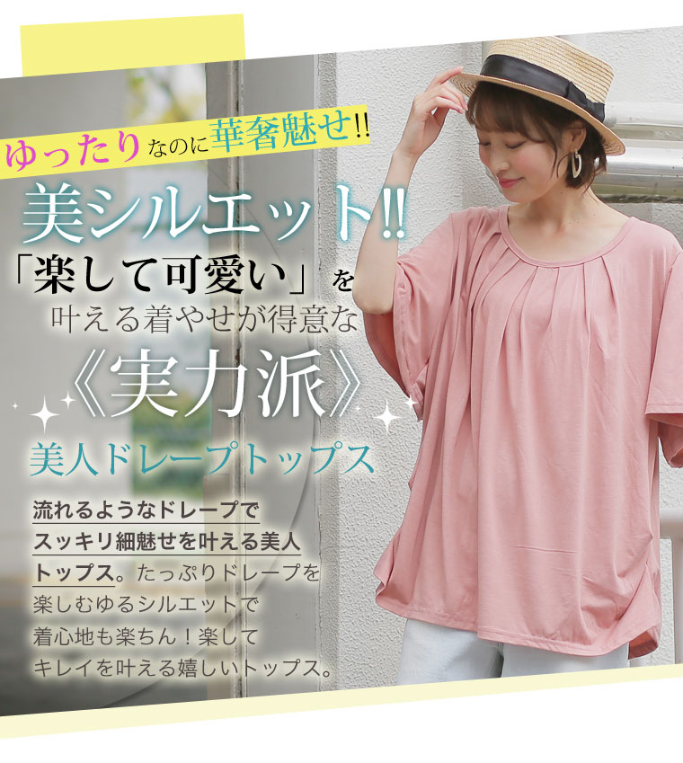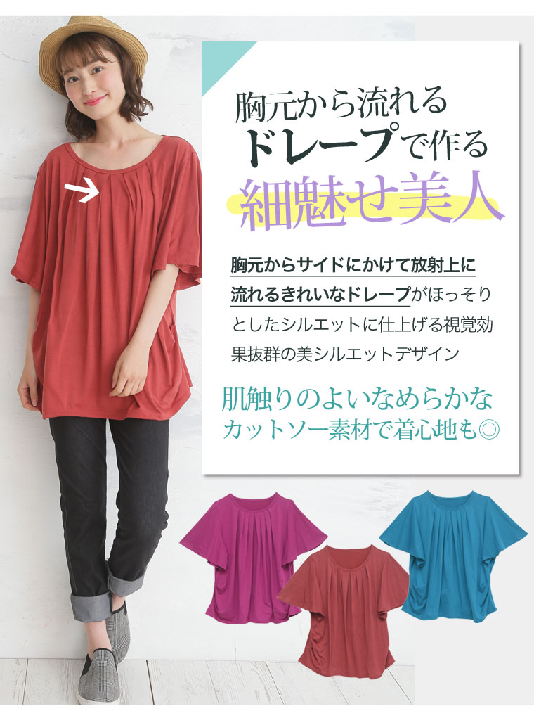 ぽっちゃりさんの為の細魅せ美人ドレープカットソートップス