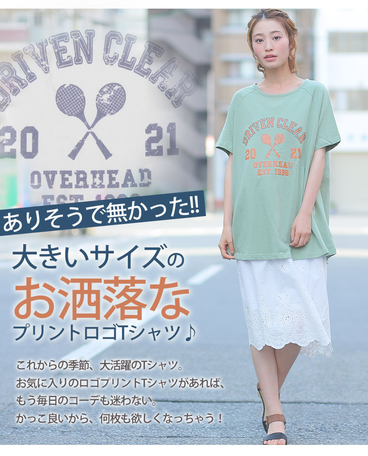 大きいサイズ オリジナルロゴ ゆるっと ラグランスリーブ 半袖 Tシャツ【メール便可1】