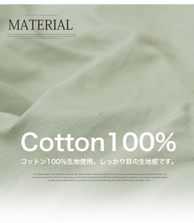 優しい肌触りのコットン100%生地でストレスフリーで快適に。