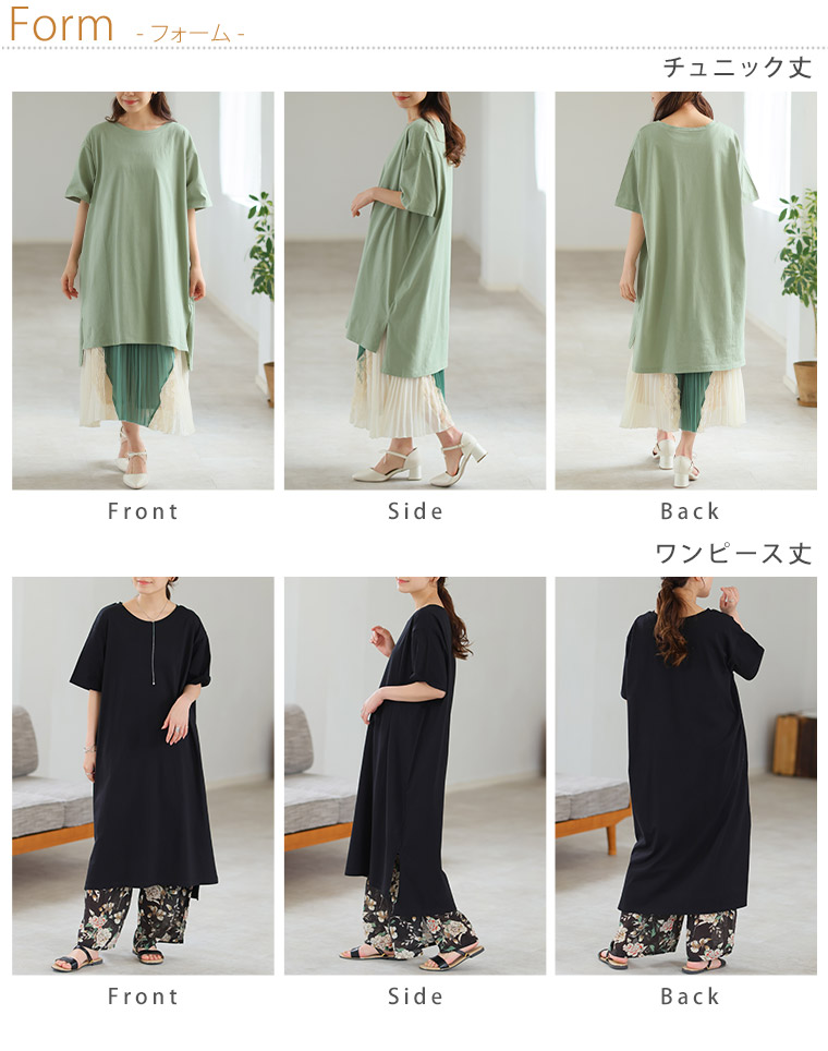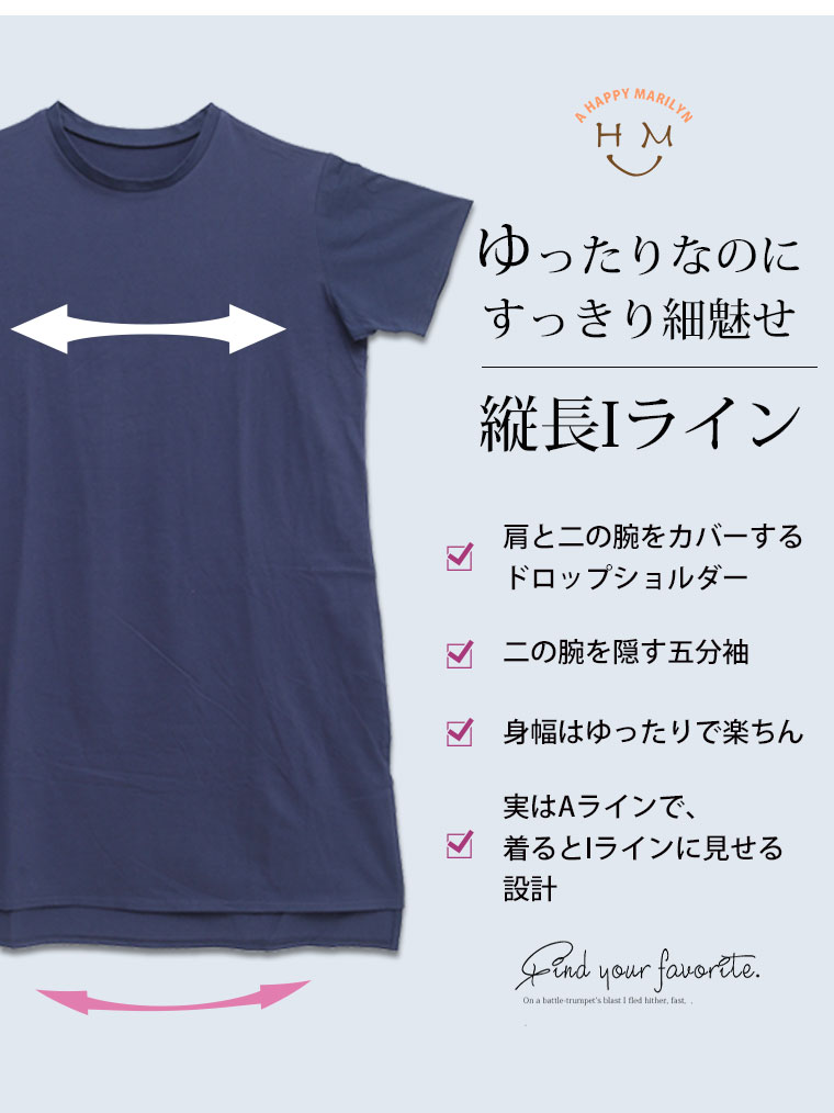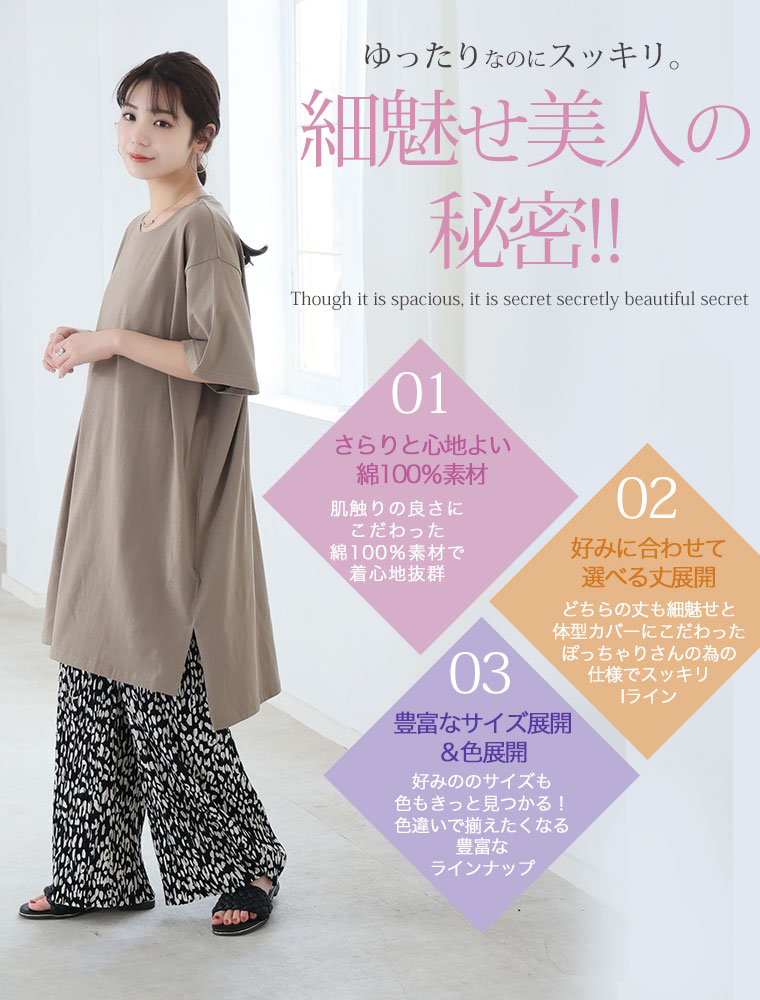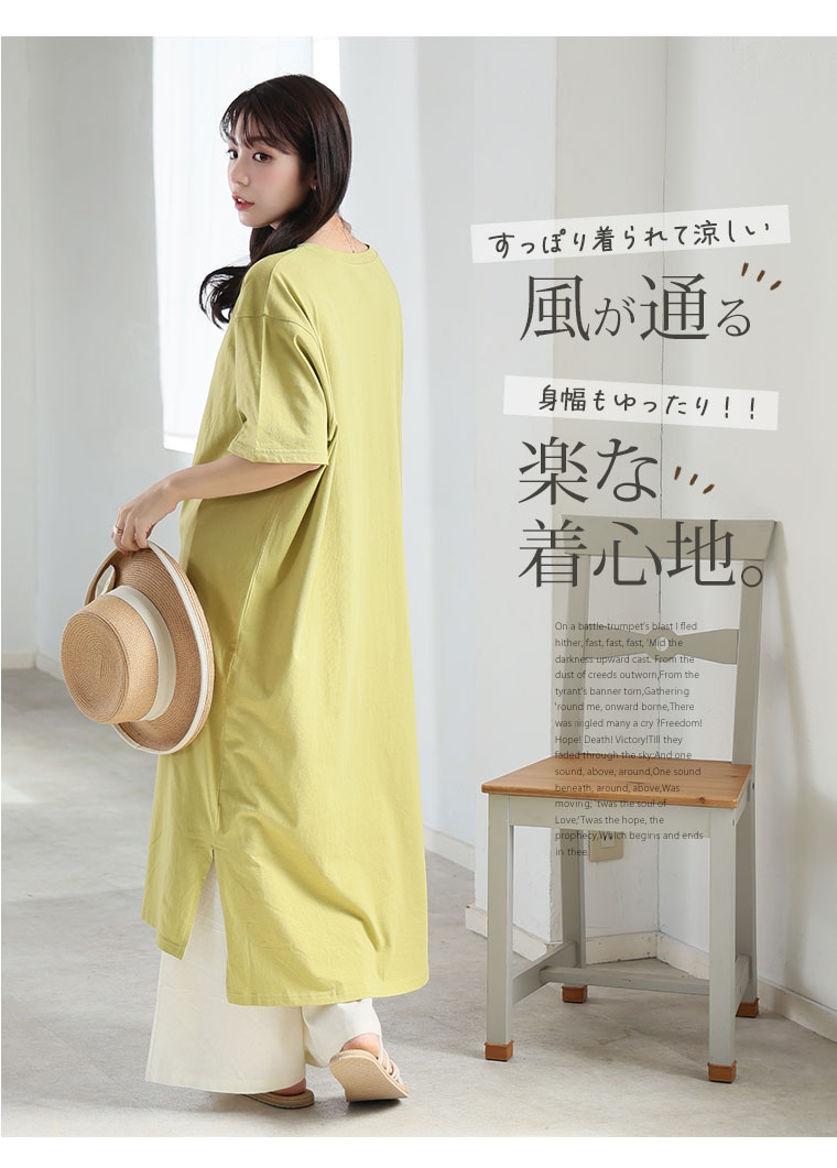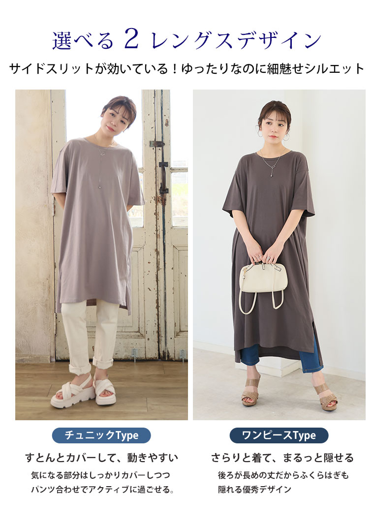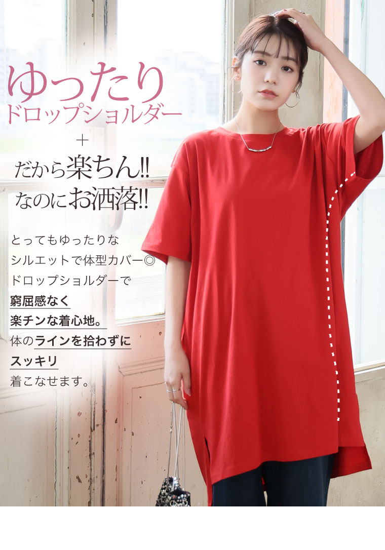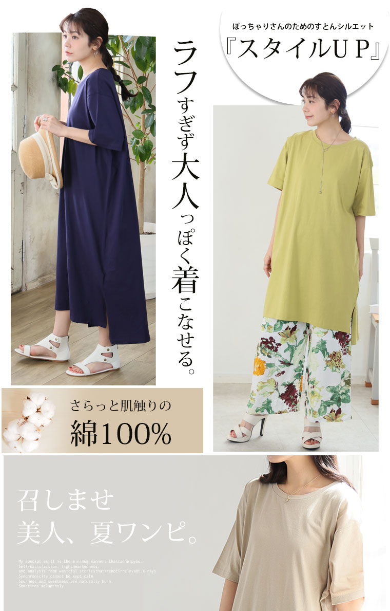 大きいサイズ 【新作◆4月9日販売】 リニューアル! 選べる2丈!! 綿100% ストンと楽ちん!! 着心地さらり スリット入り Iライン 半袖 ゆるTワンピース & チュニック | 大きいサイズの通販ならハッピーマリリン