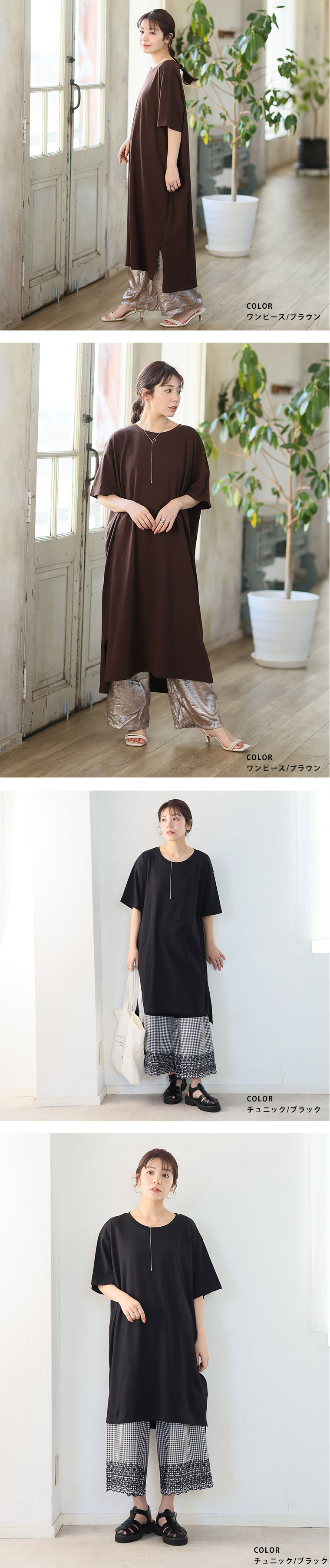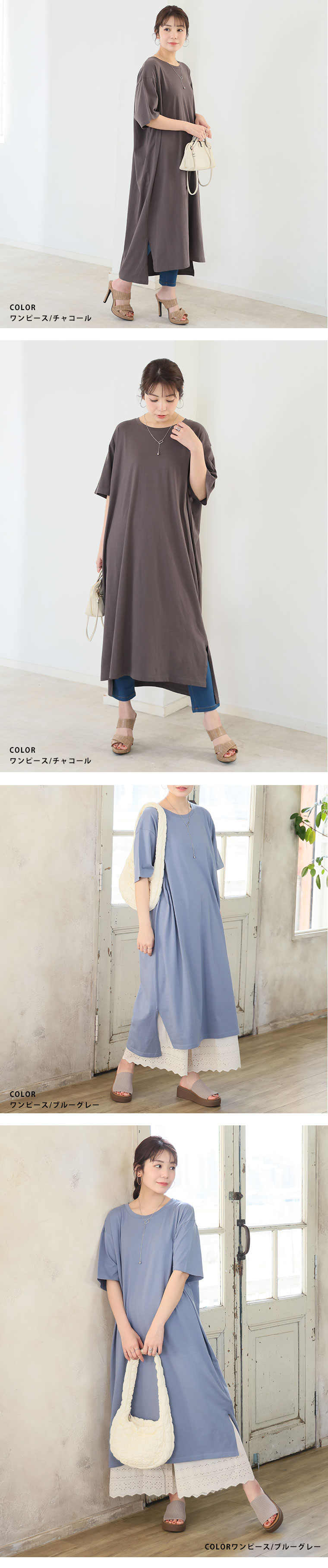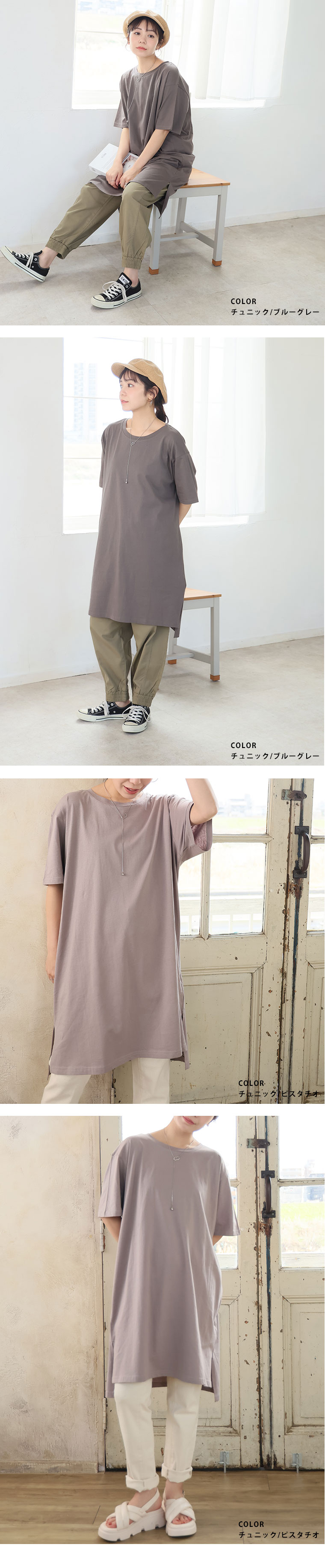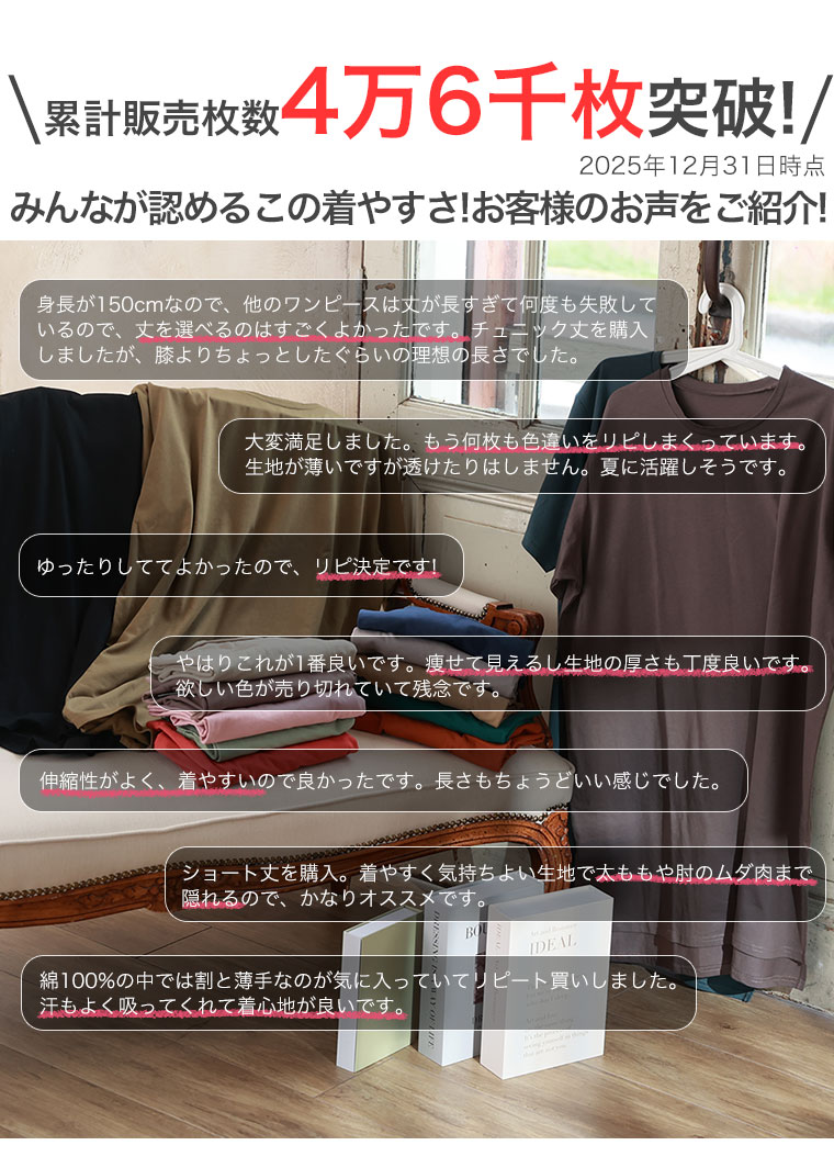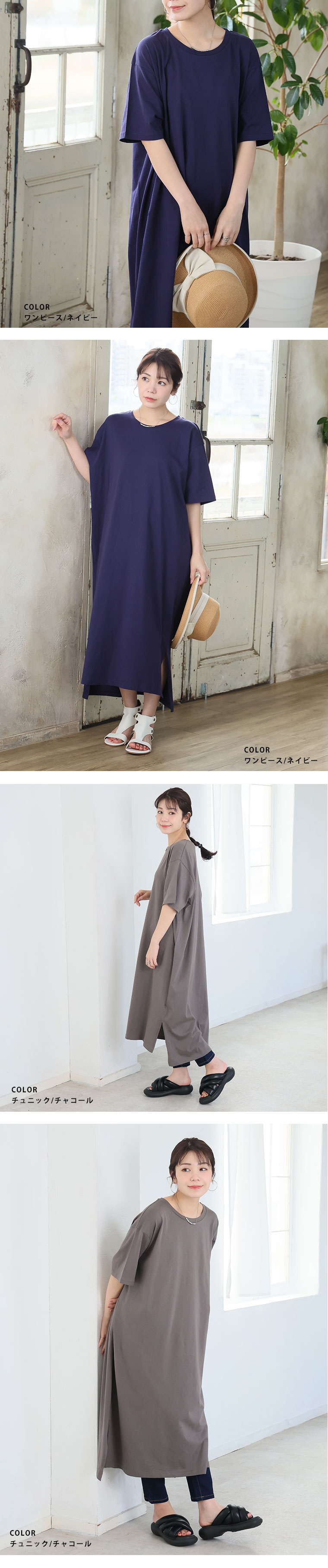 大きいサイズ 【新作◆4月9日販売】 リニューアル! 選べる2丈!! 綿100% ストンと楽ちん!! 着心地さらり スリット入り Iライン 半袖 ゆるTワンピース & チュニック | 大きいサイズの通販ならハッピーマリリン