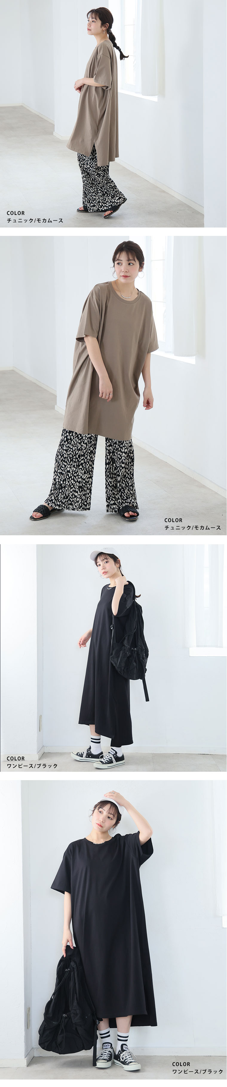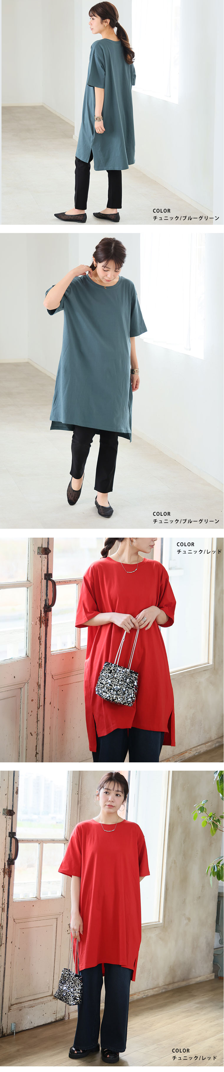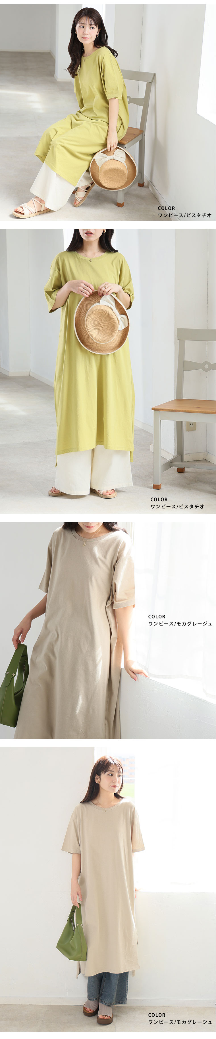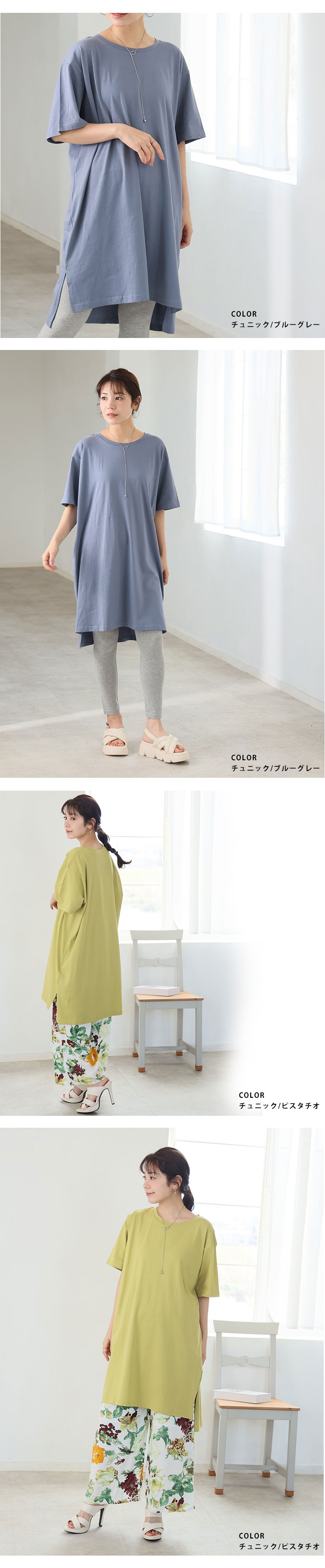 大きいサイズ 【新作◆4月9日販売】 リニューアル! 選べる2丈!! 綿100% ストンと楽ちん!! 着心地さらり スリット入り Iライン 半袖 ゆるTワンピース & チュニック | 大きいサイズの通販ならハッピーマリリン