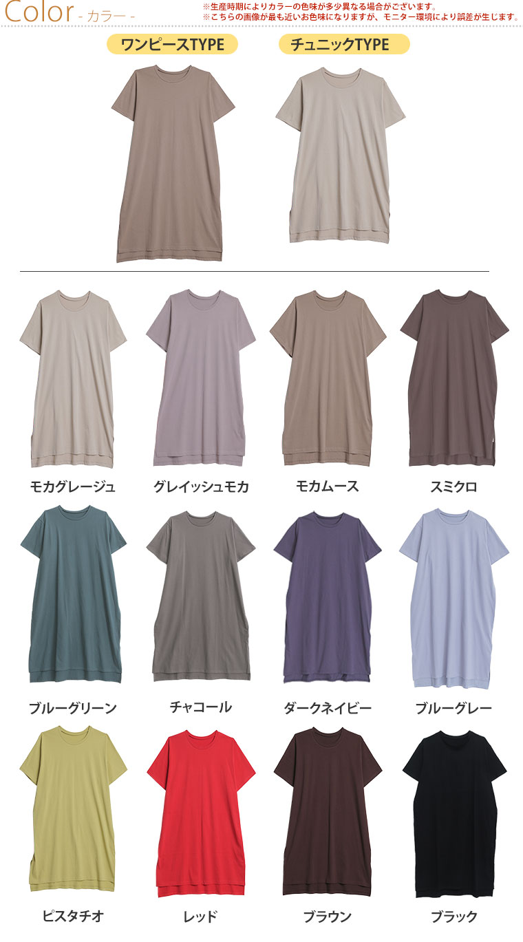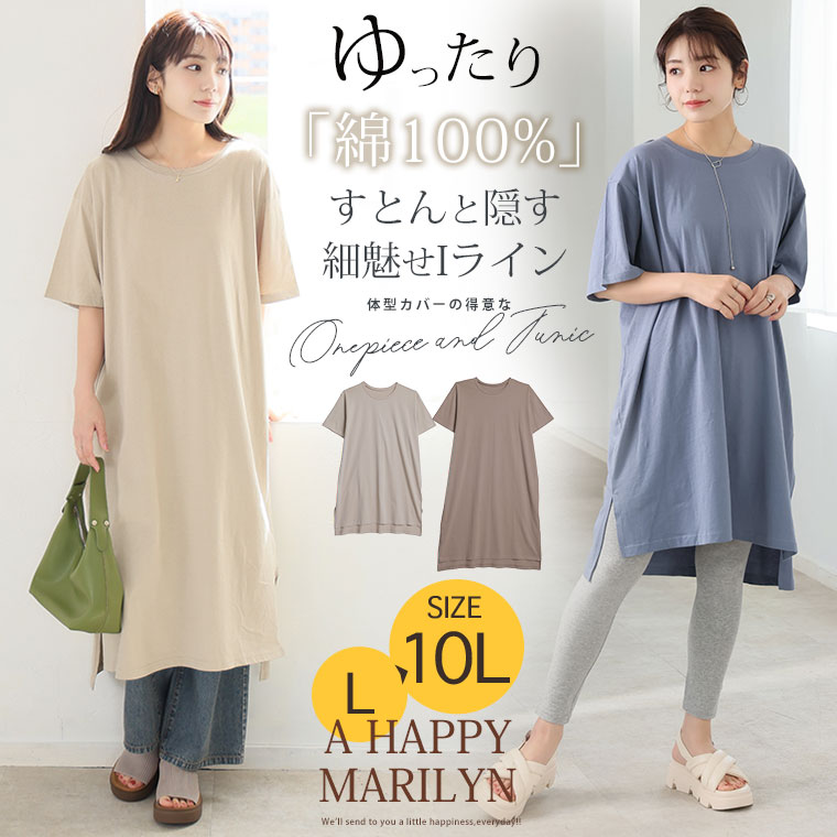 - 大きいサイズ 【新作◆4月9日販売】 リニューアル! 選べる2丈!! 綿100% ストンと楽ちん!! 着心地さらり スリット入り Iライン 半袖 ゆるTワンピース & チュニック | 大きいサイズの通販ならハッピーマリリン