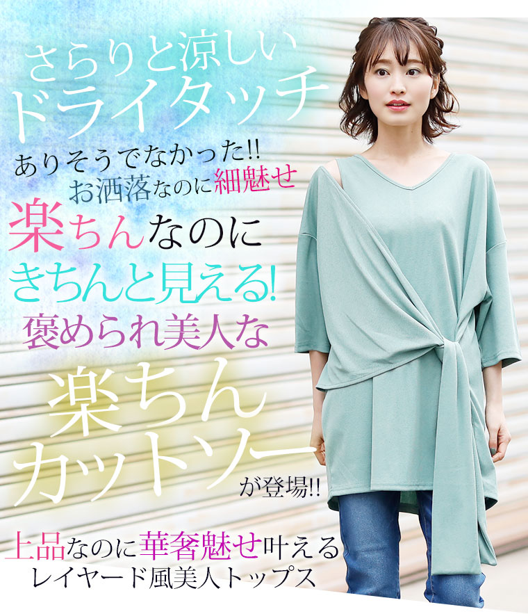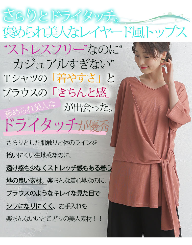 さらりとドライタッチな着心地が心地よい。生地感もきれいなレイヤード風トップス