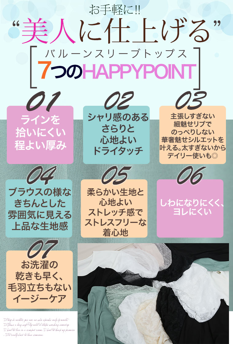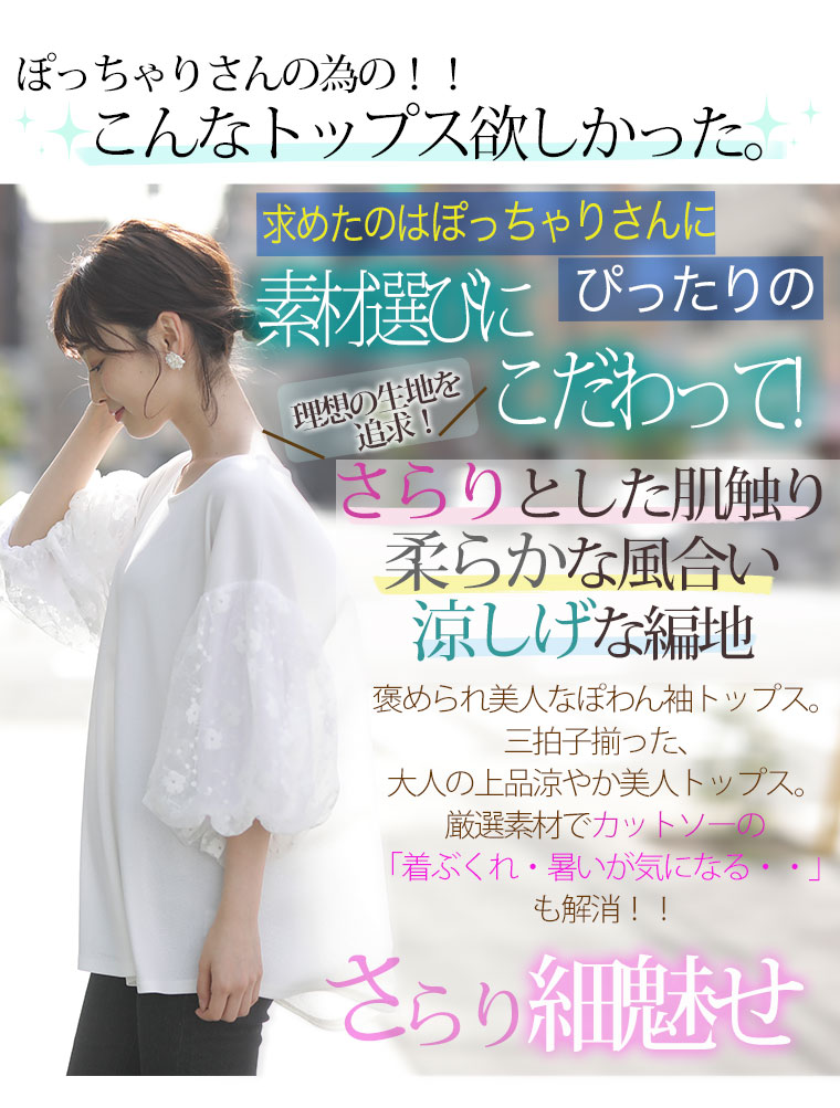 カジュアルなのに程よくきちんと。ゆったり楽チンでさらっと快適。ぽわん袖トップス。