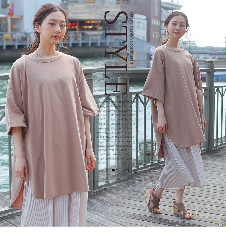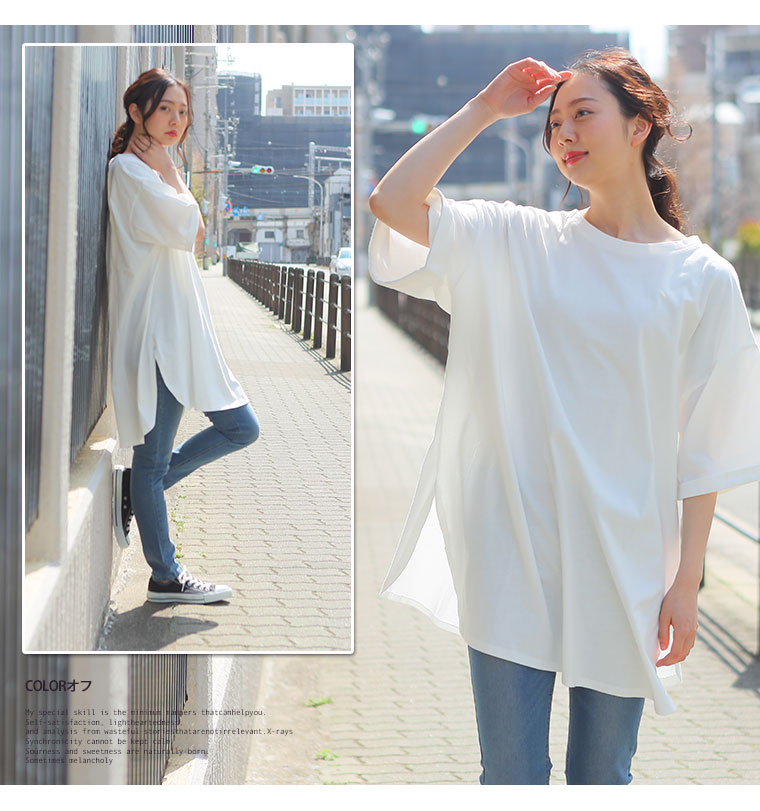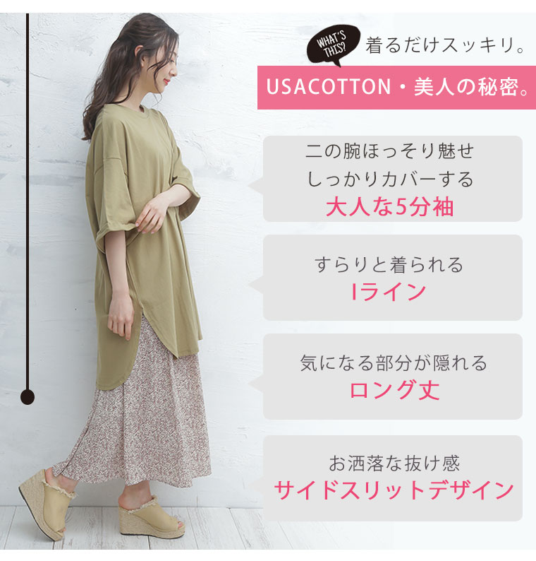 大人女性のラフスタイルに丁度いい着るだけで様になる、大人のロング丈ビッグTシャツ