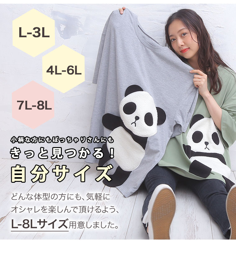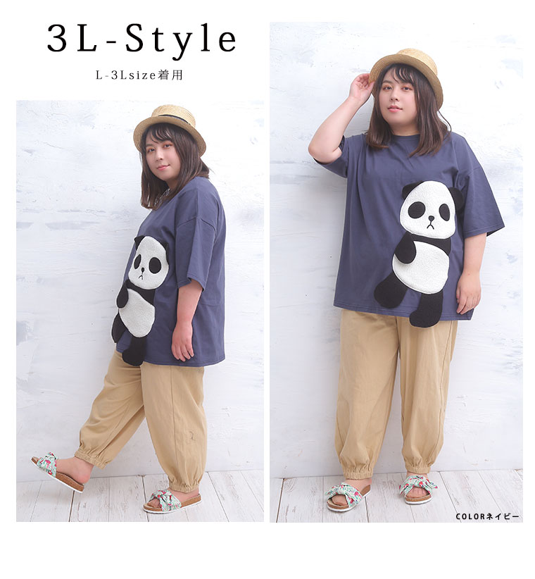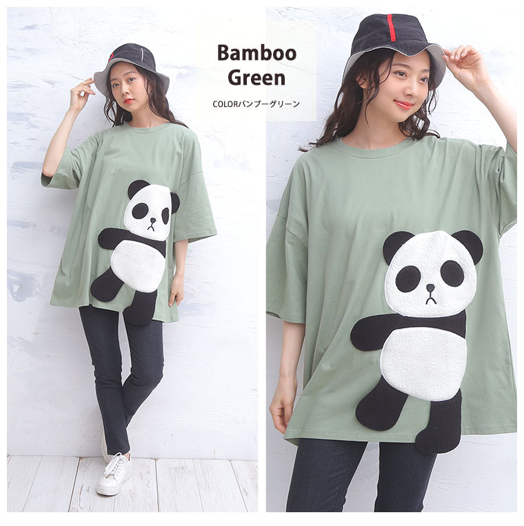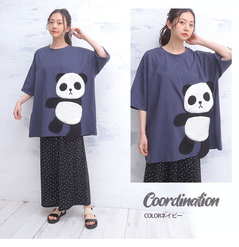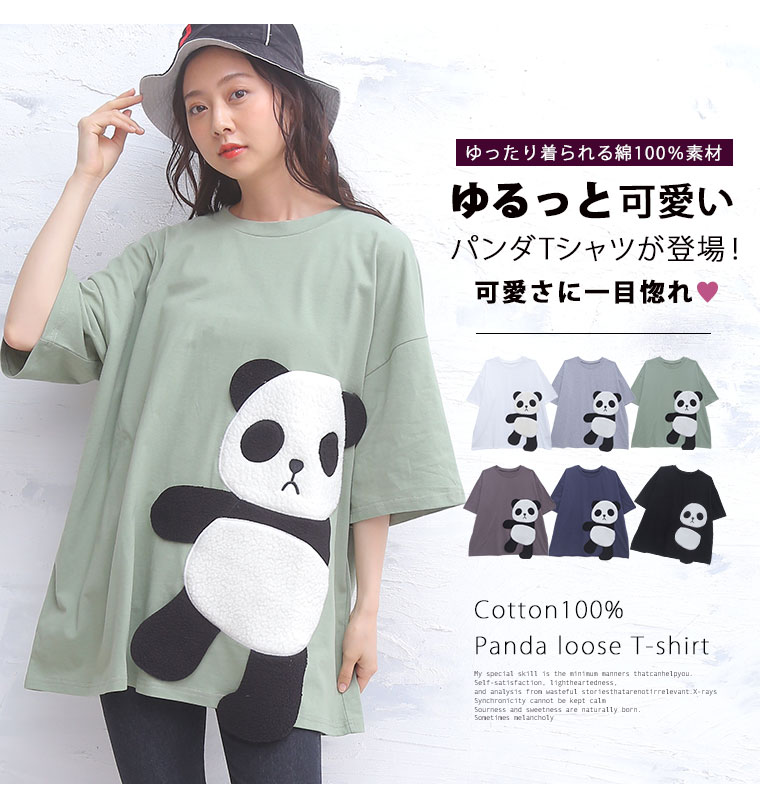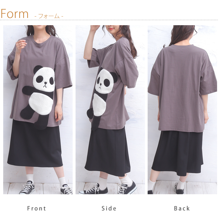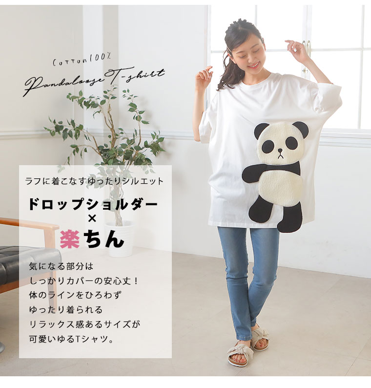 ゆるっとシルエットが可愛い。ボア刺繍のパンダTシャツ
