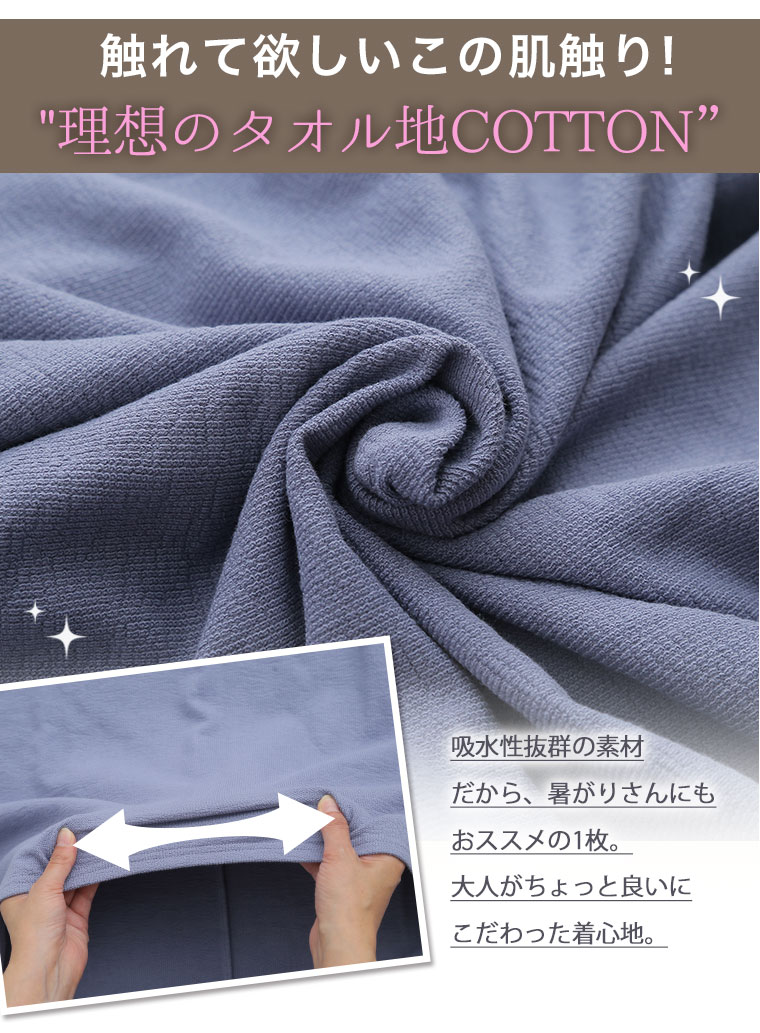 部屋着として購入しました。 本当にタオルのような生地で着ていて気持ちいいです。