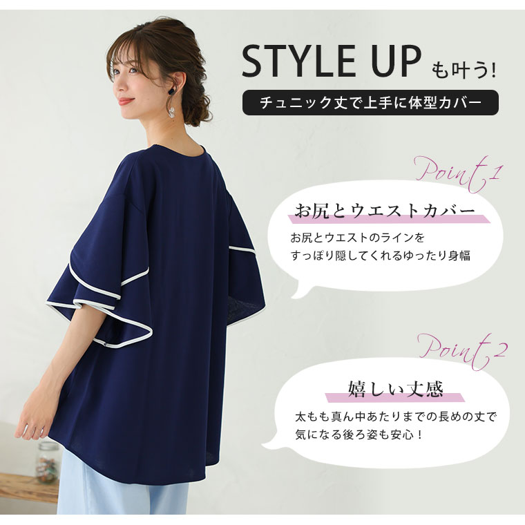 4. 大きいサイズ 新色追加!! Rin 秘密の仕様付 パイピング カットジョーゼット チュニック