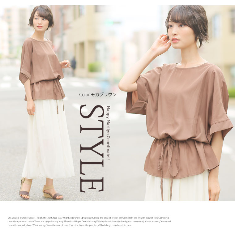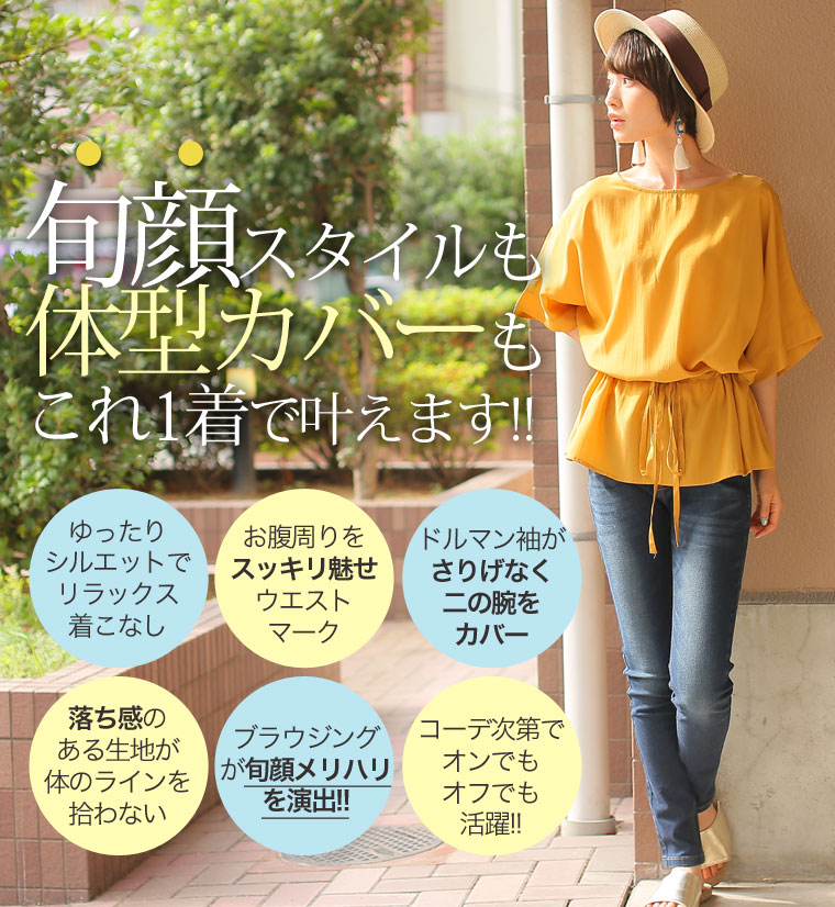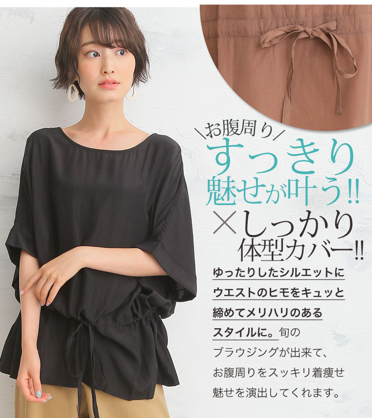 ウエストドロストデザインでふんわりカバー◎半袖プルオーバー