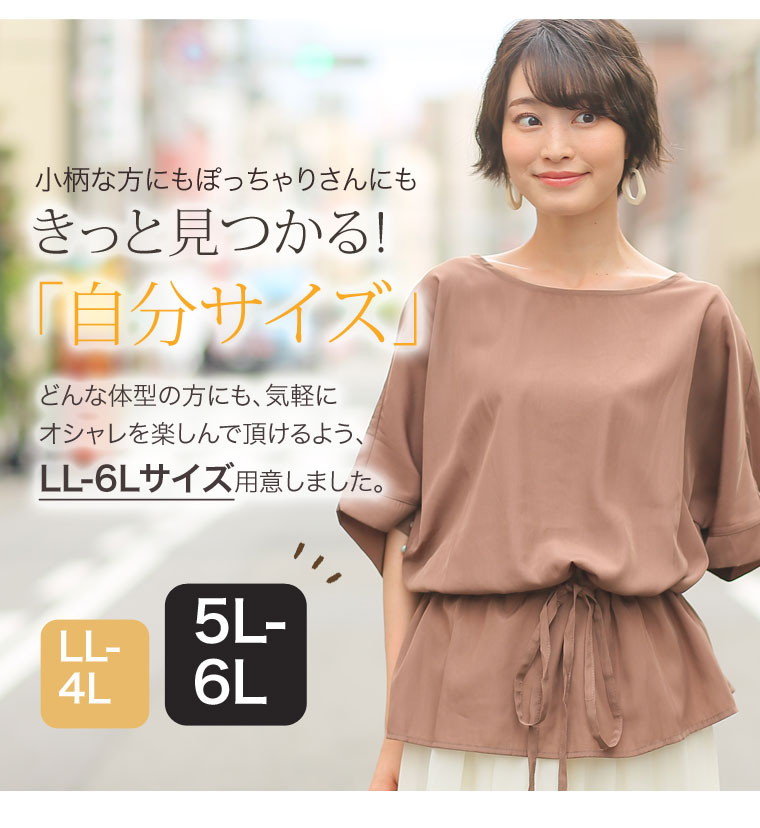 オリジナル トップス LL 3L 4L 5L 6L 秋 秋物 秋冬 ぽっちゃり ゆったり かわいい カワイイ 可愛い おしゃれ カジュアル ナチュラル ガーリー ビッグサイズ ウエスト ドロスト 半袖 プルオーバー【メール便可1】