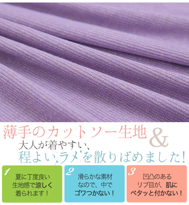 生地が薄く夏でも着やすいです。ラメも入っていて可愛いです。