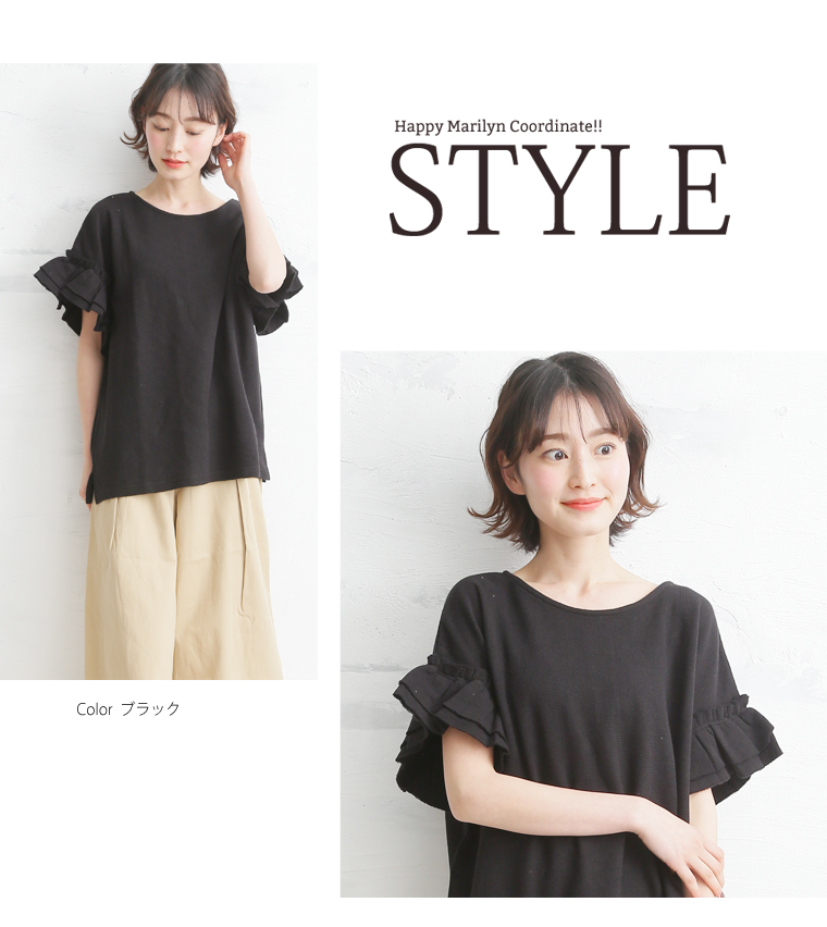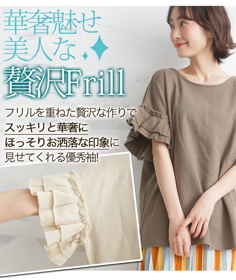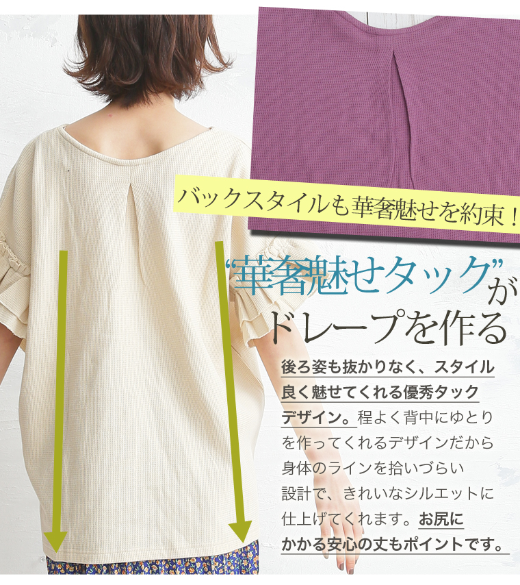 二の腕をカバー出来る大きなフリルがガーリーで可愛い♪こだわりのバックタックでスッキリ細魅せも◎