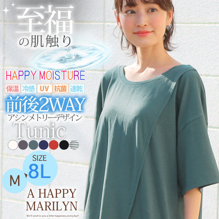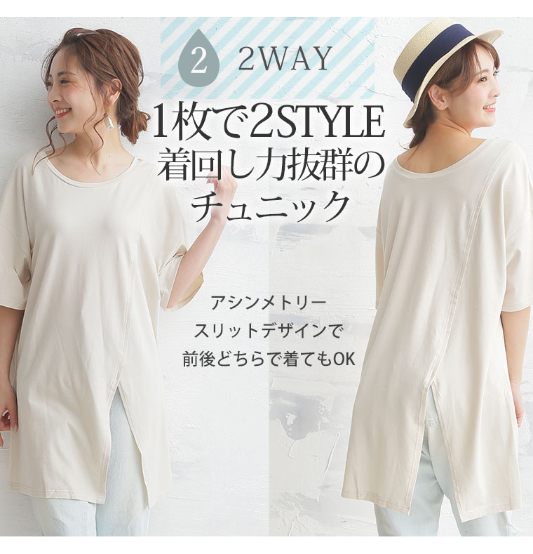 ハッピーモイスチャー 夏の至福の カットソー 前後2wayアシンメトリースリットチュニック