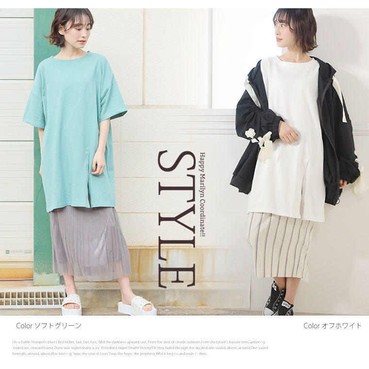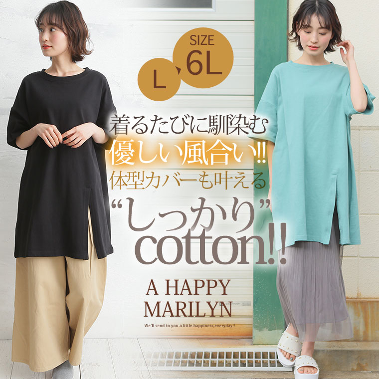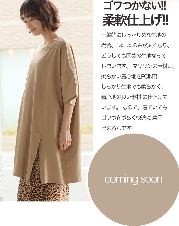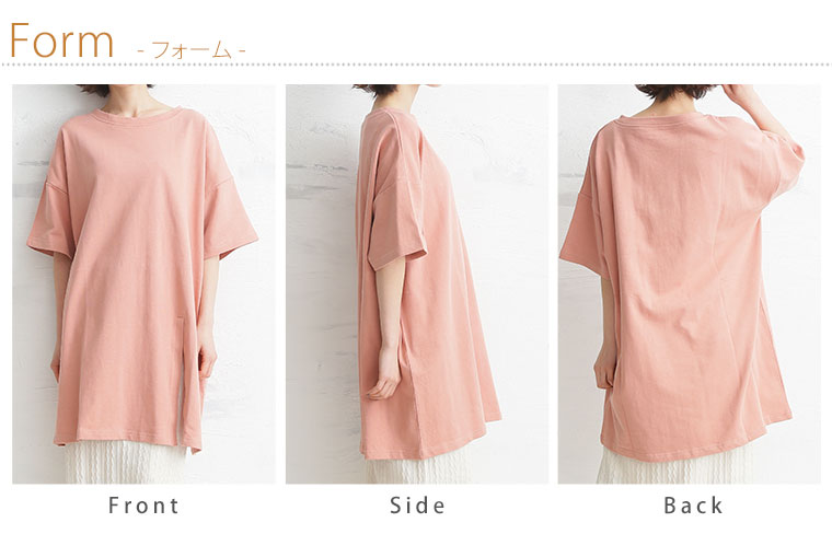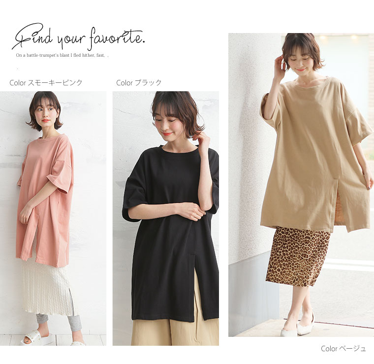 肌触りのよい綿100%生地♪ゆったり着れてスッキリ魅えのスリット入りチュニック