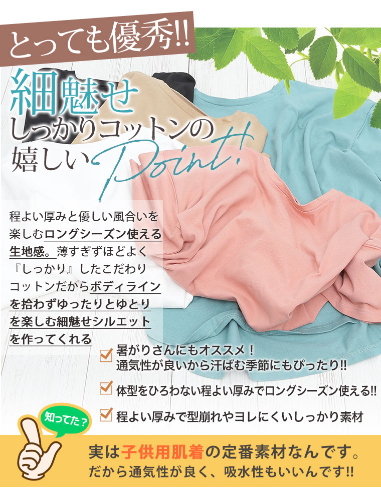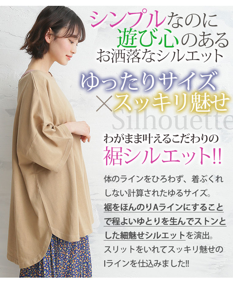 ぽっちゃりさんにぴったり!綿100%さらりと着られるゆったり裾ラウンド細魅せTシャツ