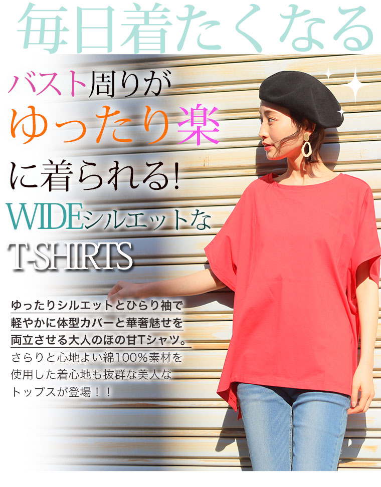 バスト周りがゆったり楽に着られるワイドシルエットなTシャツ
