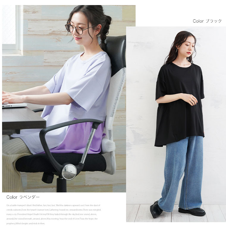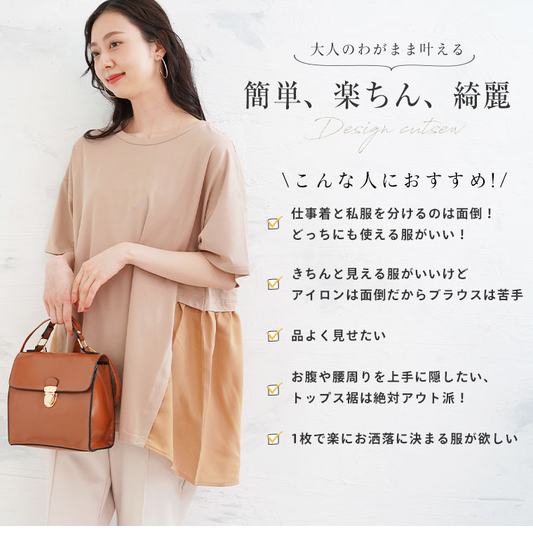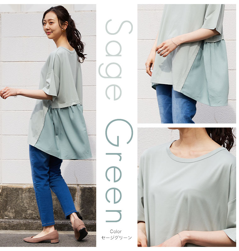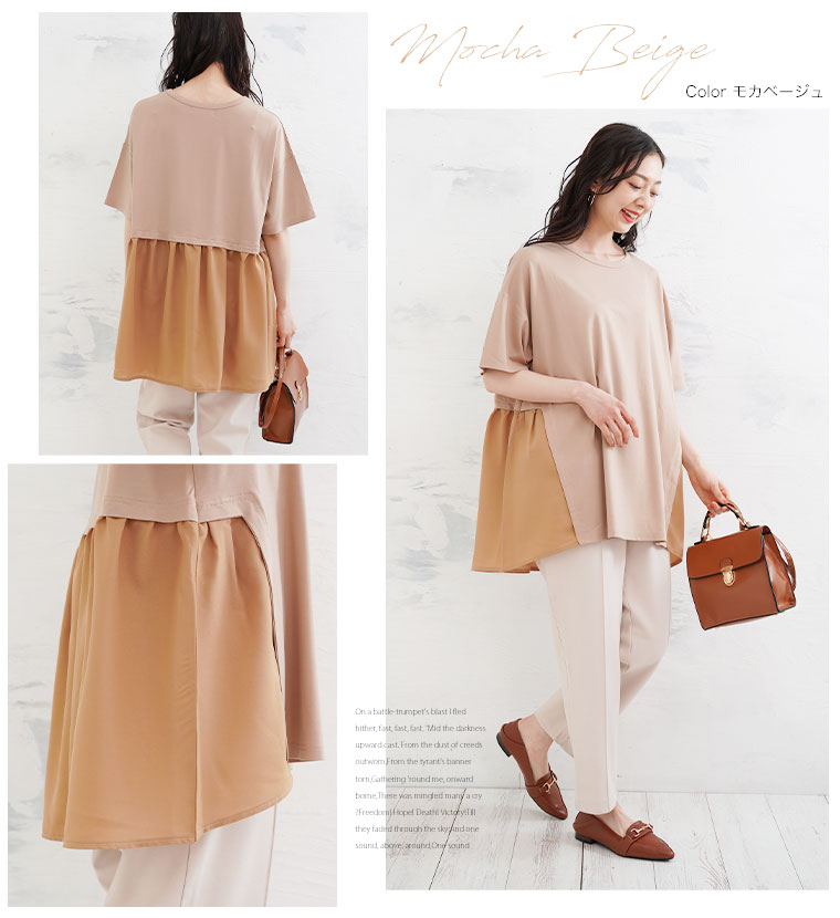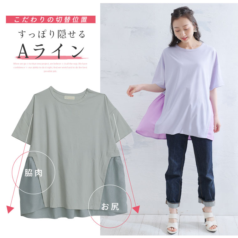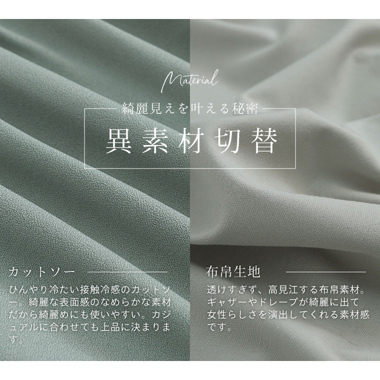 なめらか接触冷感カットソー 異素材切り替えチュニック