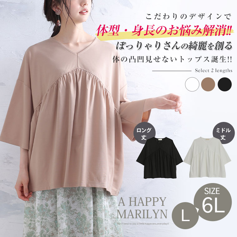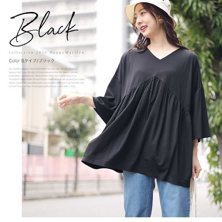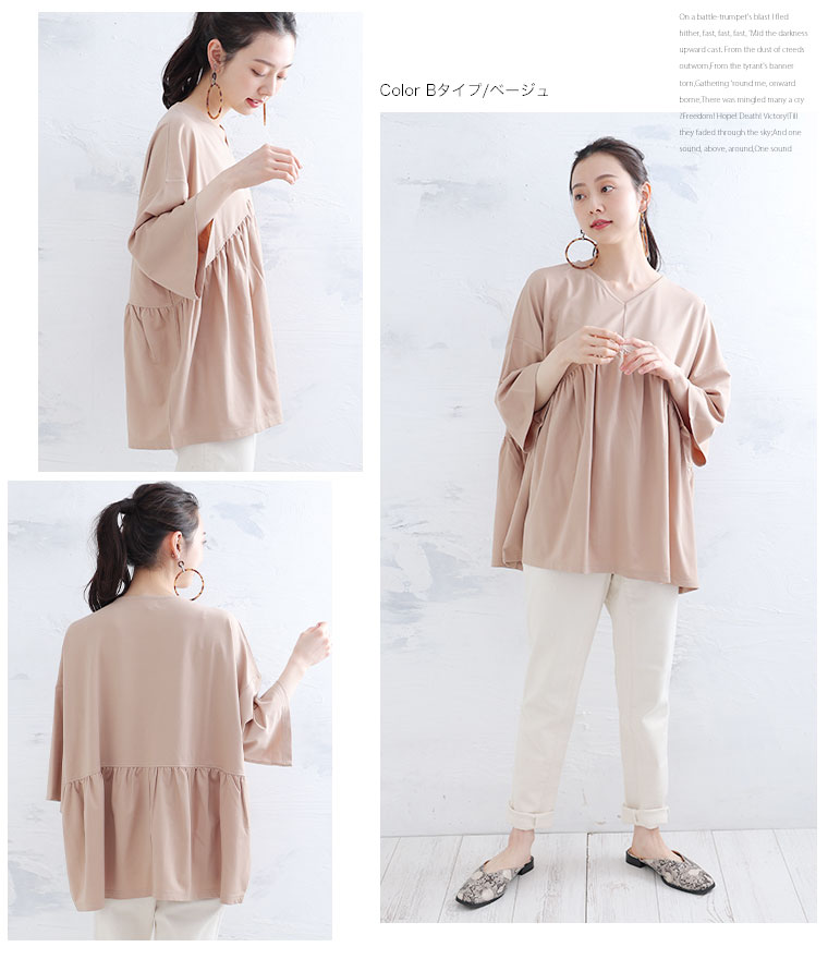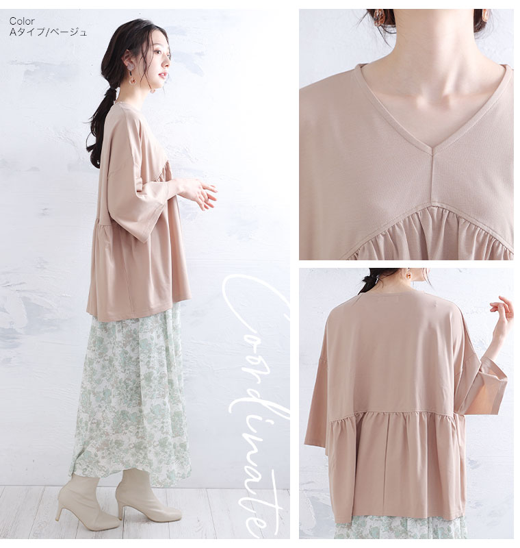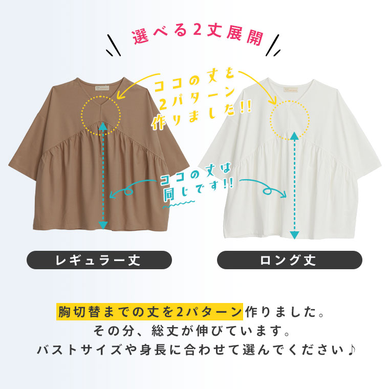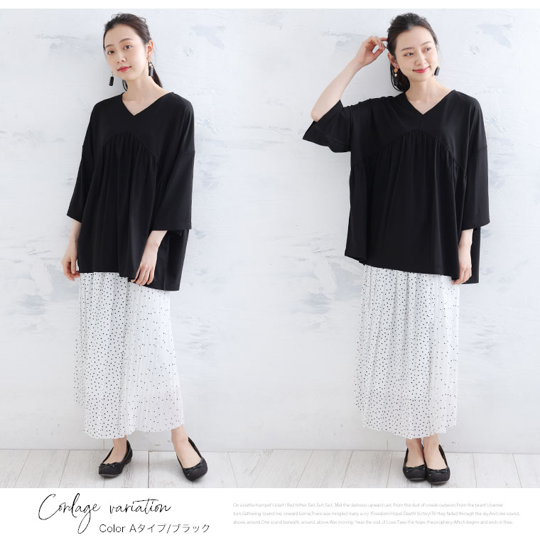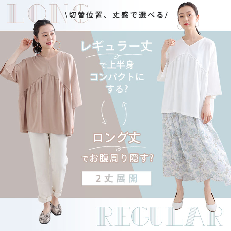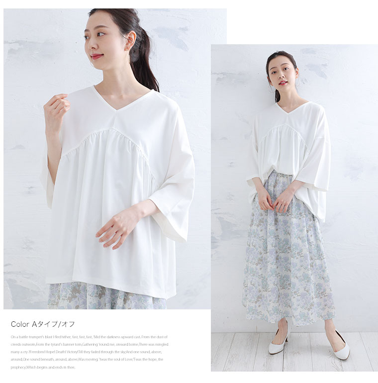 身体の凹凸を見せない 斜め切替ギャザートップス