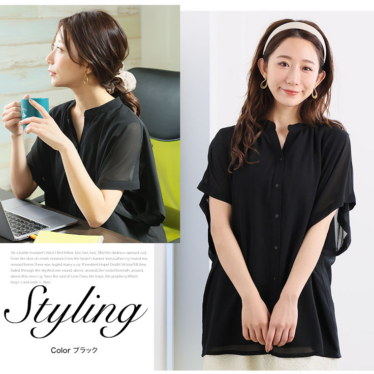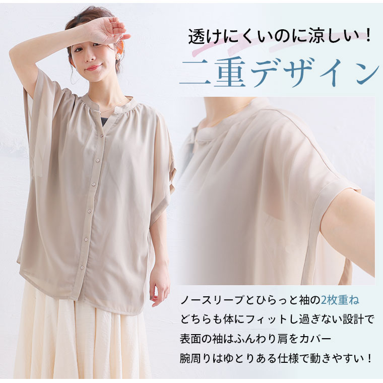 腕周り楽ちん♪上品2枚重ねジョーゼットスキッパーブラウス