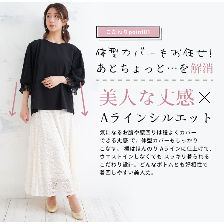 お腹周りのピッタリ感を軽減!美人な丈感×Aラインシルエット