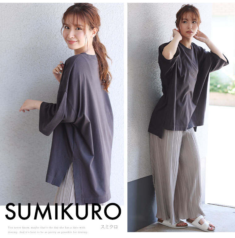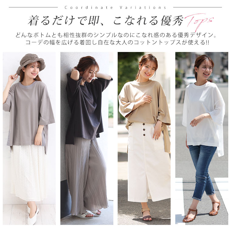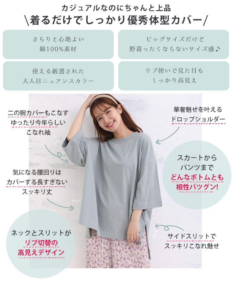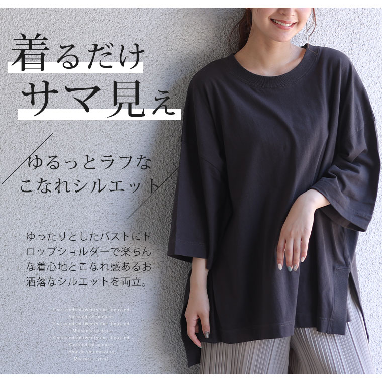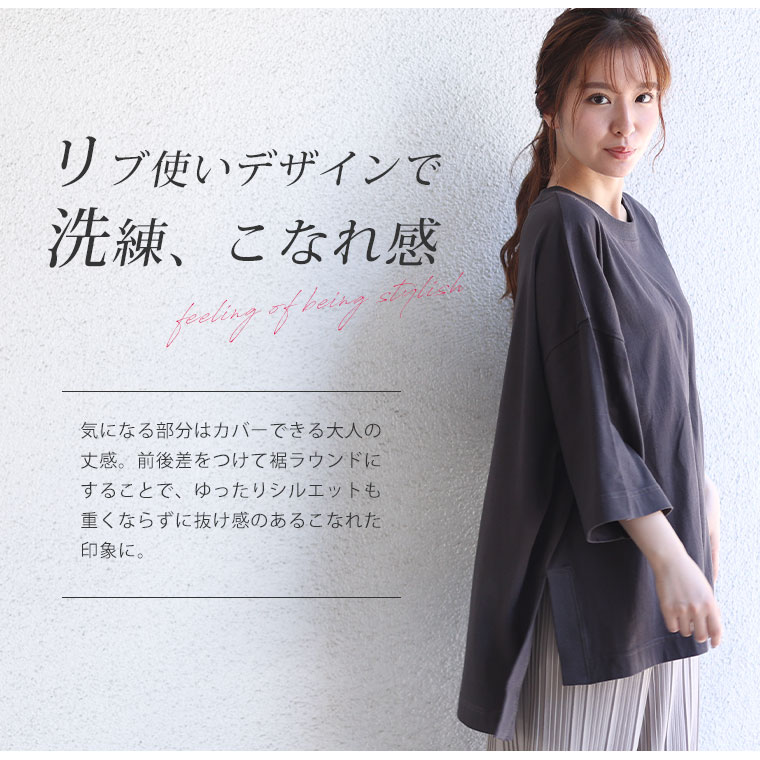 サイドスリット×リブ 大人のこなれ袖ゆるTシャツ