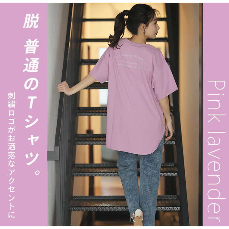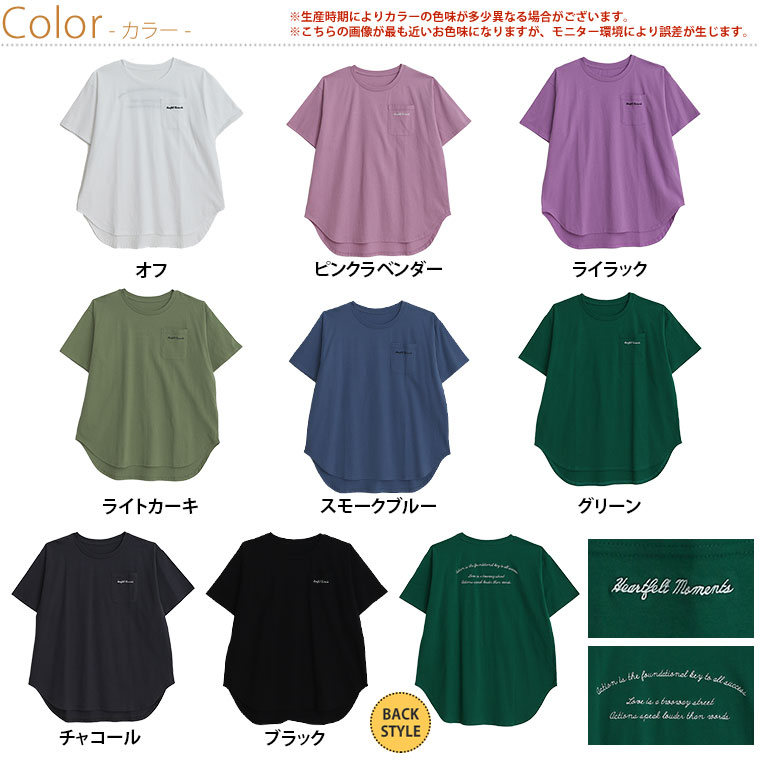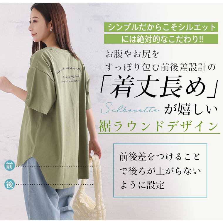刺繍がポイント!もっと楽ちん!裾ラウンドチュニック丈Tシャツ