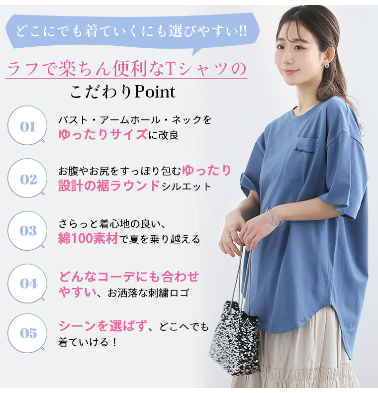 5. 大きいサイズ リニューアル!! もっと楽ちん! さらっと涼やか 裾ラウンド チュニック丈 Tシャツ