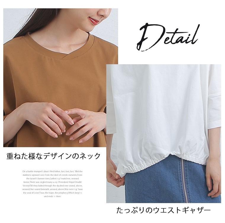 フロントギャザーでブラウジングした様な見え方になりお腹周りもスッキリ魅せ