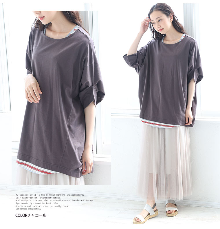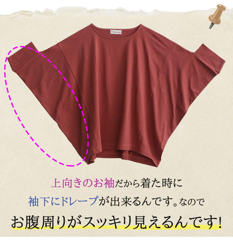 シンプルですがドルマン袖がお洒落です♪生地もさらりとしていて暑い夏でも着心地が良いです。