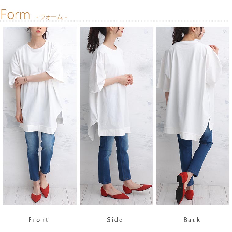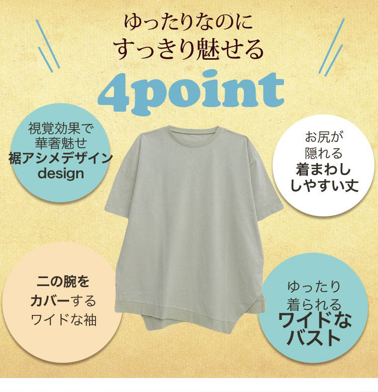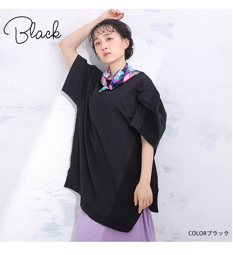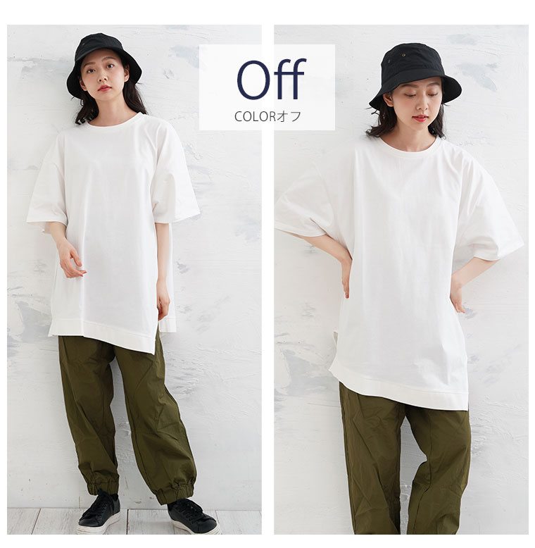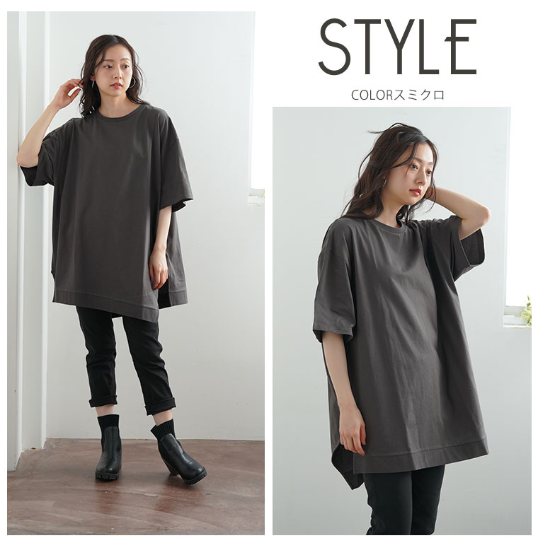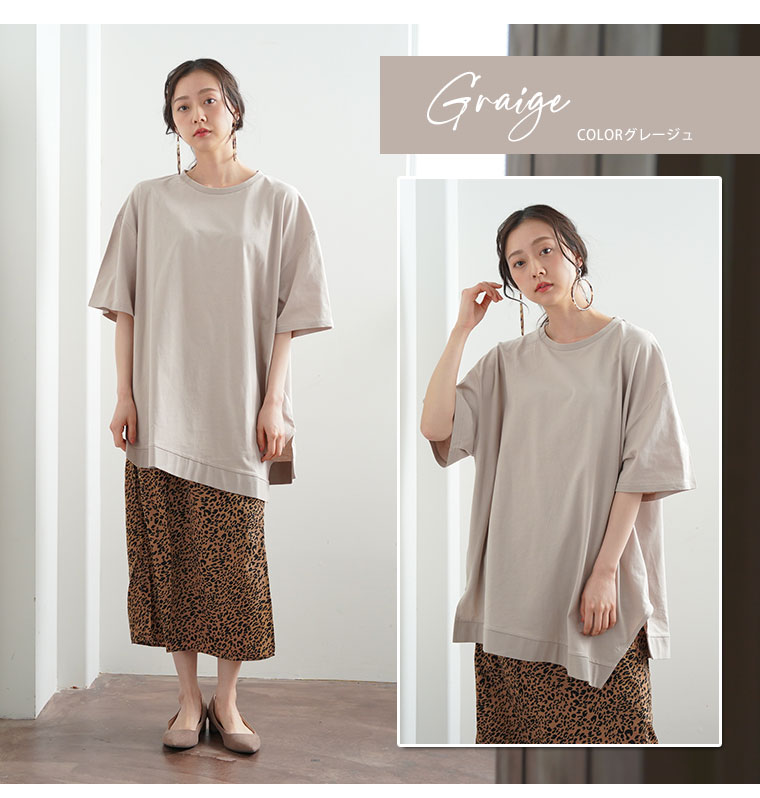 下半身をまるっとカバーできるアシンメトリーロング丈Tシャツ