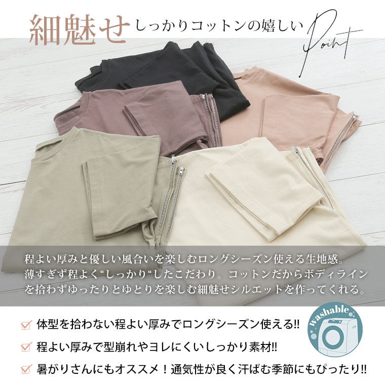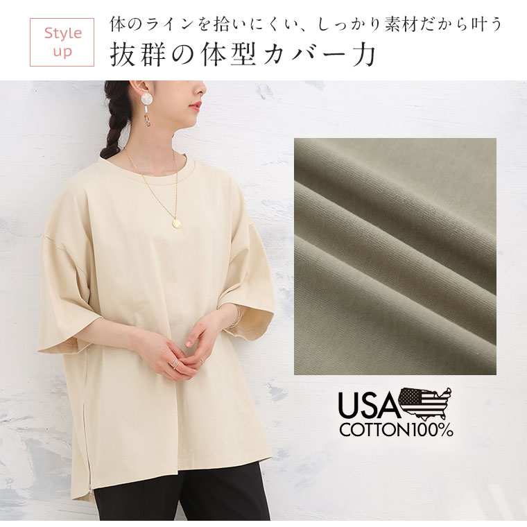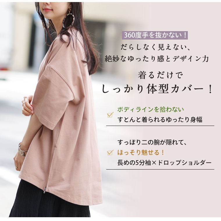 ボディラインを拾わない、ゆったりと着れてしっかり体型カバー