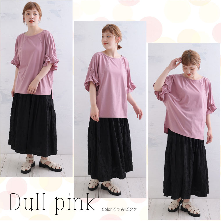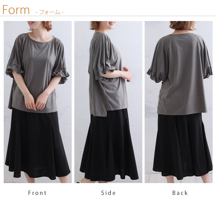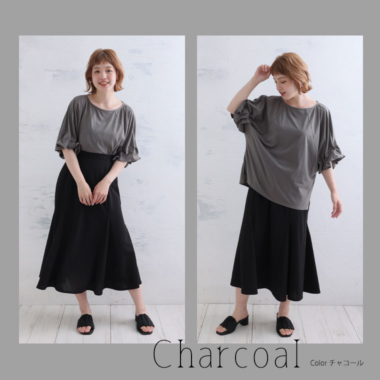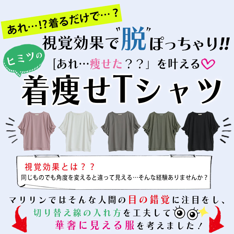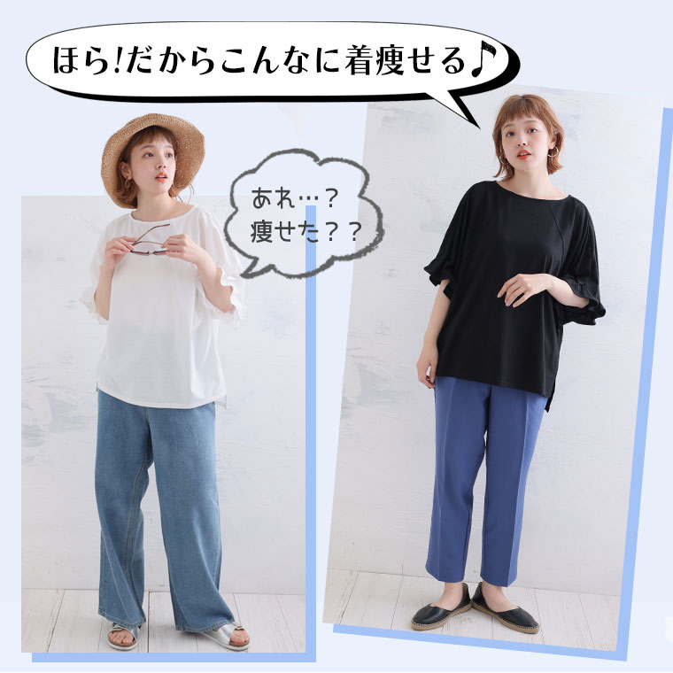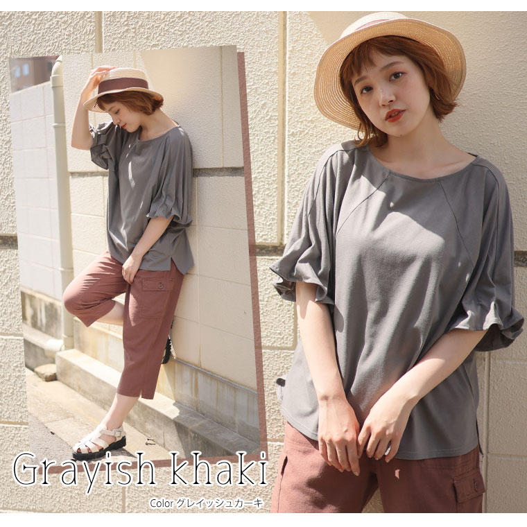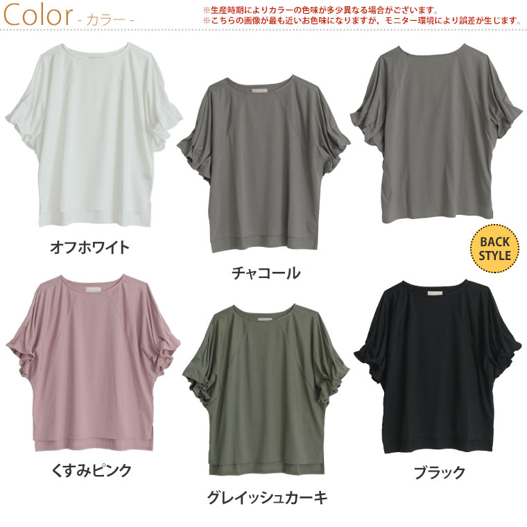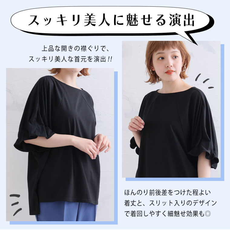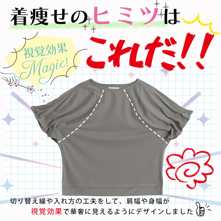 くしゅくしゅギャザーが二の腕をすっきり魅せる♪ 着るだけ細魅せカットソー