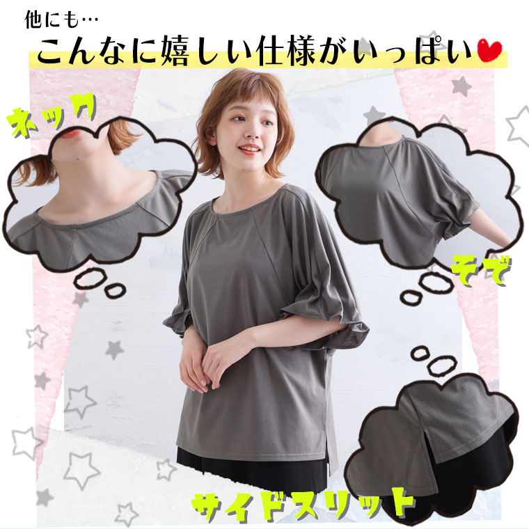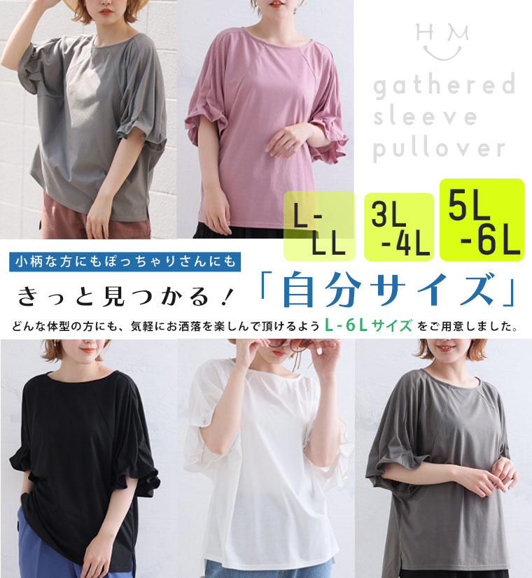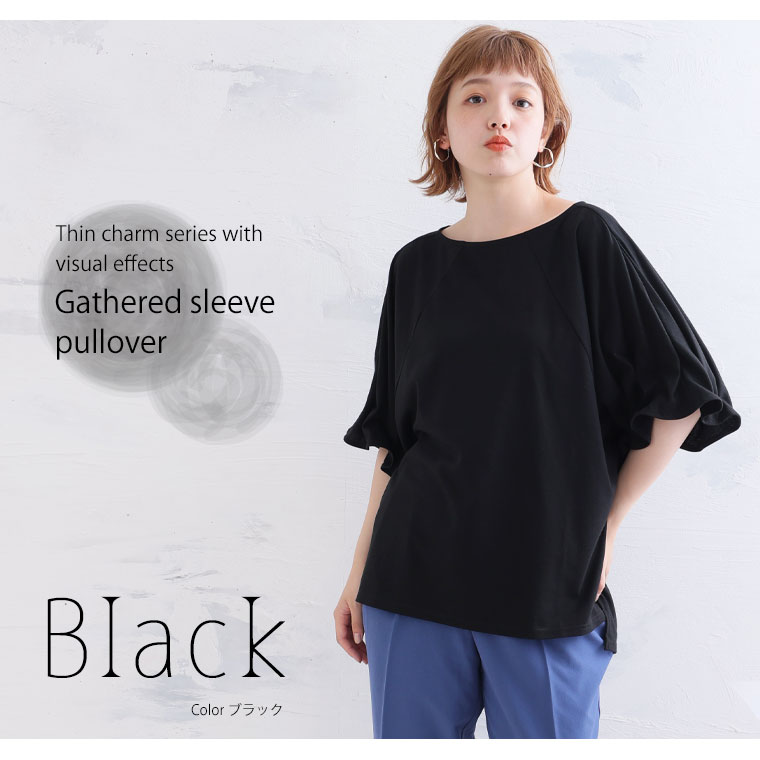 <ふんわり可愛く二の腕カバー ギャザースリーブプルオーバー