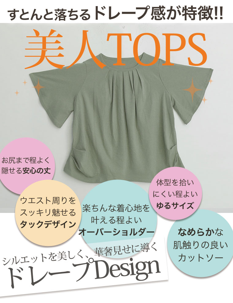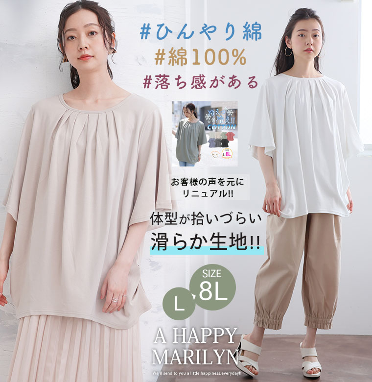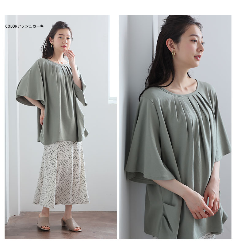 コットン100%超ひんやり!フロントタック体型カバートップス