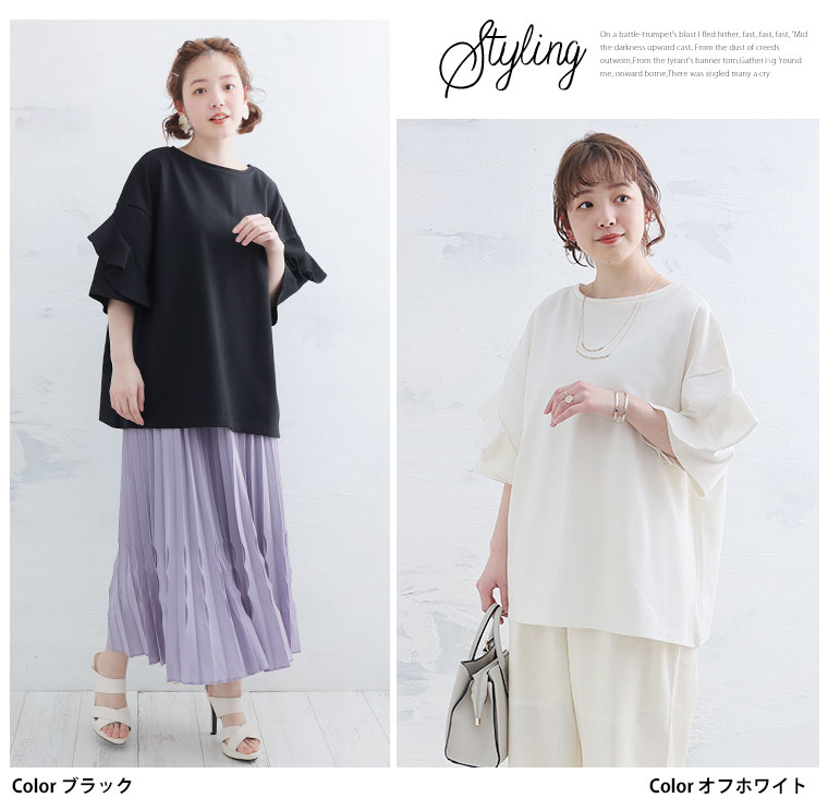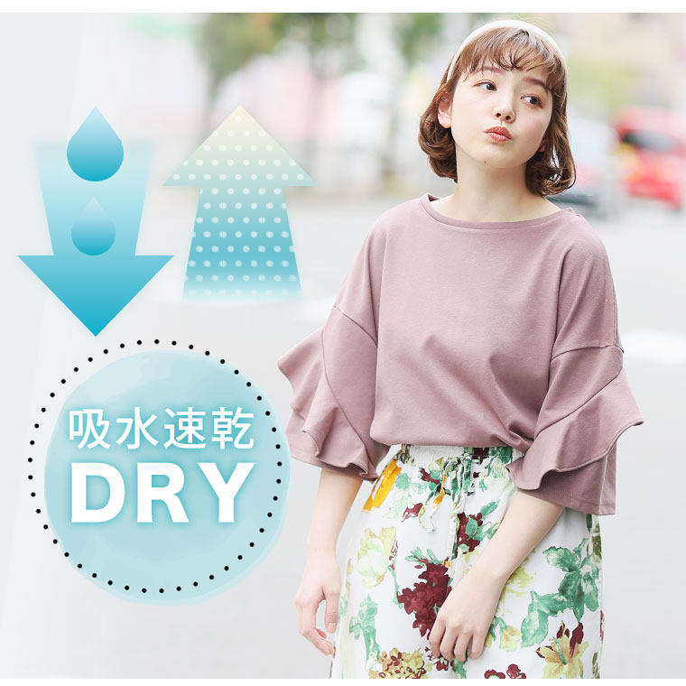 汗が張り付かない夏に嬉しいフリル美人袖 Tシャツ
