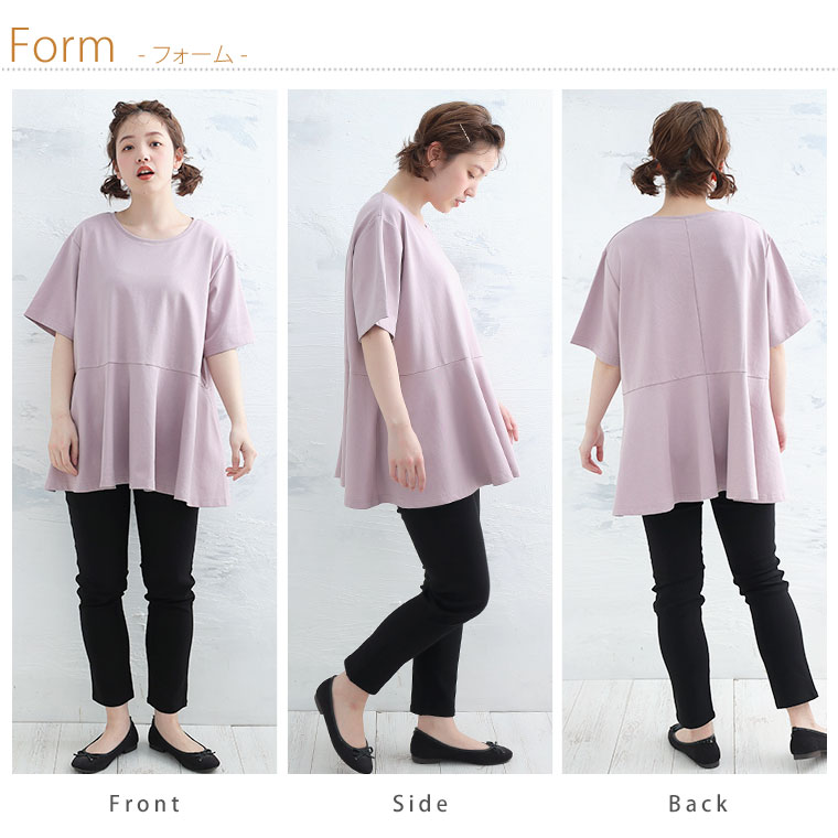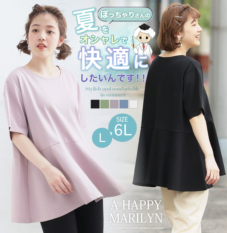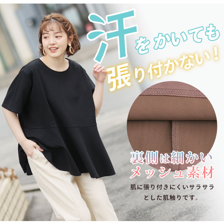 汗が張り付かない夏に嬉しい腰周りスッキリフレアTシャツ