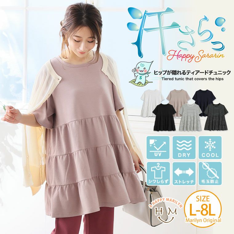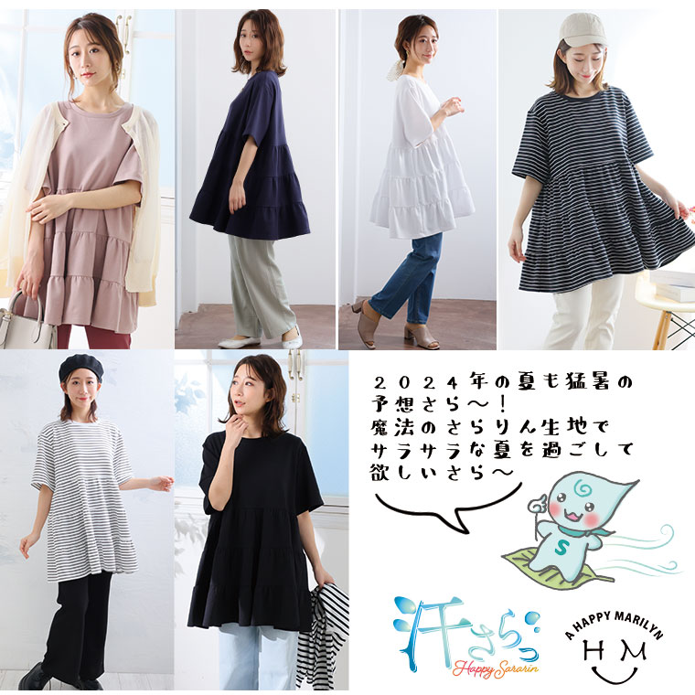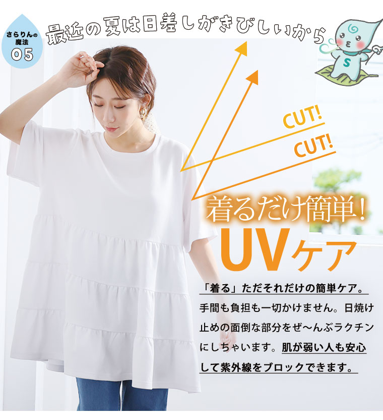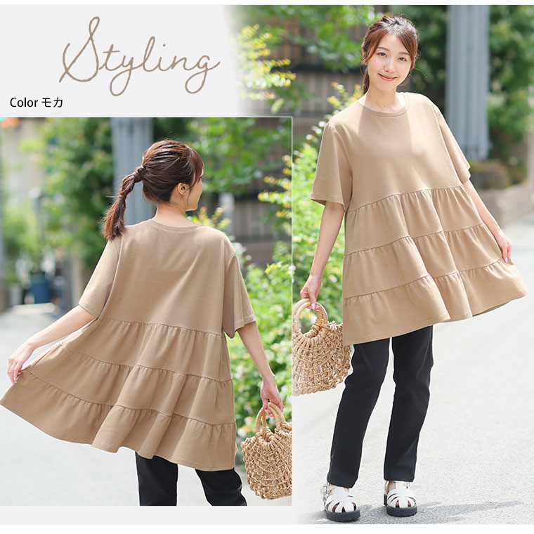 ヒップが隠れる ゆったり触冷感ティアードチュニック
