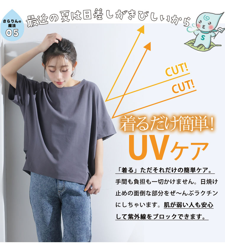 カットソー プルオーバー LL 3L 4L 5L 6L 7L 8L 半袖 五分袖 夏 夏物 夏服 夏用 ぽっちゃり ゆったり uv 接触冷感 腰回り 【ハッピーさらりん】 ウエストタック入り スッキリ魅せ コクーントップス