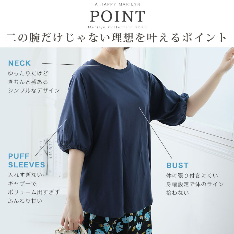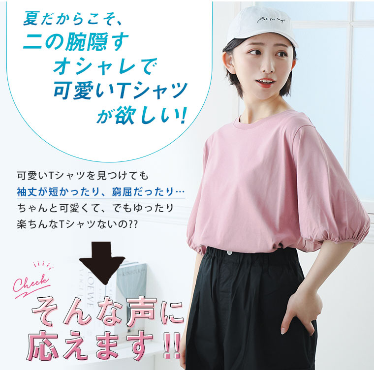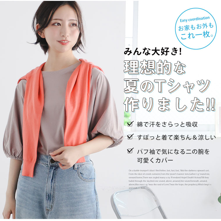 汗をさらっと吸収USAコットン パフ袖で気になる二の腕を可愛くカバーする夏のTシャツ