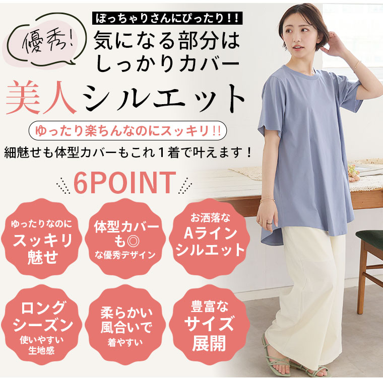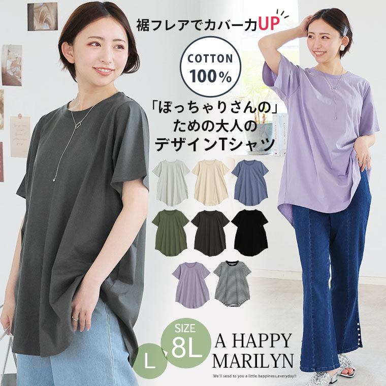 カットソー チュニック LL 3L 4L 5L 6L 7L 8L 半袖 春 春物 春服 夏 夏物 夏服 ぽっちゃり ゆったり プラスサイズ かわいい おしゃれ cotton コットン お腹 お尻 魔法のお腹カバー 綿100 裾フレア Tシャツ