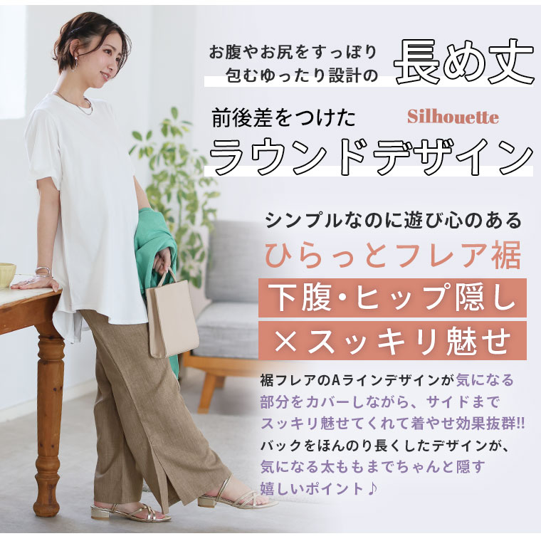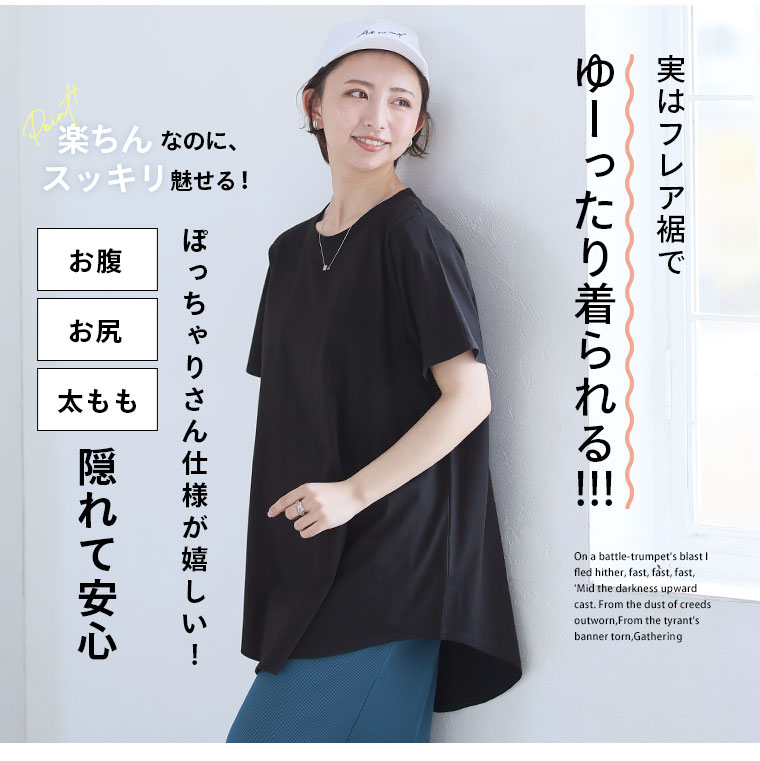 大きいサイズ 魔法のお腹カバー 綿100 裾フレア Tシャツ