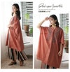 さらっとした綿素材に、フロントにあしらわれた幾何学調の刺繍が存在感を放ち、シンプルなのに印象的な着こなしに。